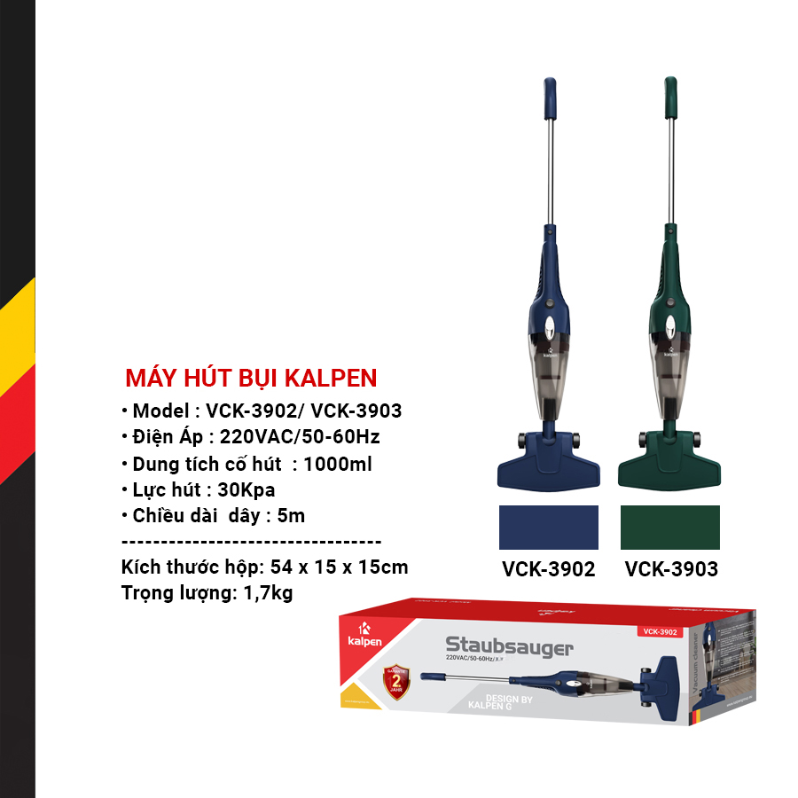 Máy hút bụi cao cấp Kalpen VCK-3902 được bảo hành 2 năm. Chính vì vậy, khi sản phẩm có bất cứ dấu hiệu nào hư hỏng trong thời gian đang được bảo hành thì bạn hoàn toàn có thể liên hệ trực tiếp với chúng tôi để được hỗ trợ sớm nhất.