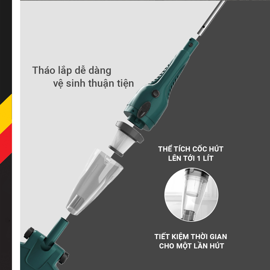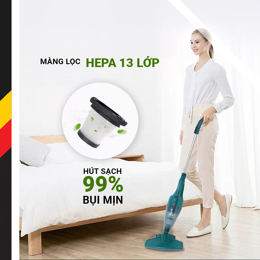 Sản phẩm được thiết kế thông minh với khả năng thay đổi tùy biến cao khi tay cầm có thể biến đổi dạng thẳng đứng khi hút sàn và cầm tay khi hút đệm, sofa, khe cửa, giường đệm…Do đó, bạn có thể dọn mọi ngóc ngách ở trong nhà một cách dễ dàng và hiệu quả cao. Với một chiếc máy hút bụi nhưng lại có rất nhiều những công dụng khác nhau giúp bạn linh hoạt hơn trong việc dọn dẹp nhà cửa và giúp nhà thông thoáng, sạch sẽ hơn, giúp cải thiện sức khỏe cho chính người thân trong gia đình.