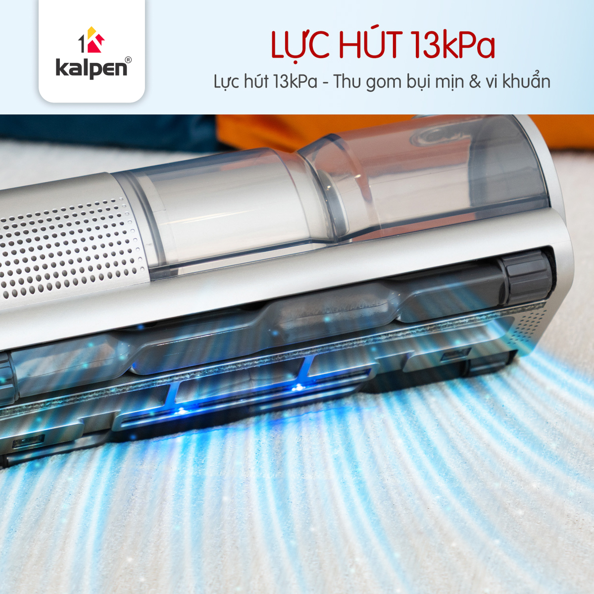 Với công suất 300 W và lực hút chân không lên đến 13.000 Pa, Kalpen V4 dễ dàng hút sạch bụi mịn PM2.5, tóc, lông thú cưng và các mảnh vụn li ti trên bề mặt nệm, gối và sofa. Motor hoạt động ổn định, bền bỉ, giúp máy duy trì lực hút mạnh trong suốt quá trình sử dụng mà vẫn tiết kiệm điện năng.