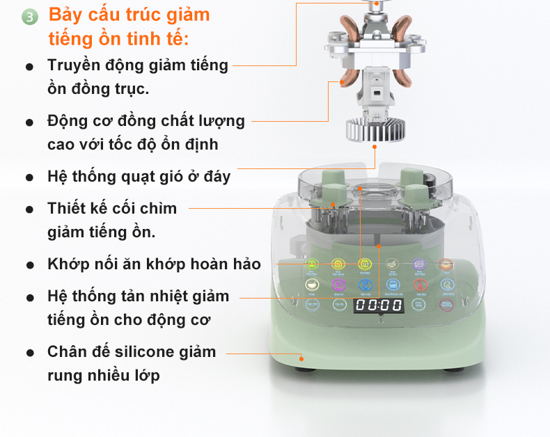 Hệ thống chống ồn 13 cấp độ đảm bảo tiếng ồn được giảm thiểu tối đa, quá trình sử dụng diễn ra nhẹ nhàng, êm ái, mang đến không gian sống nhẹ nhàng.