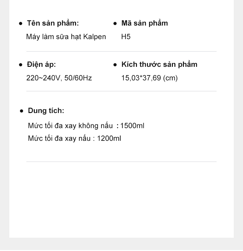 Máy làm sữa hạt chống ồn Kalpen H5 là một sản phẩm với nhiều cải tiến và nhiều tính năng ưu việt. Với một chiếc máy nhỏ xinh này trong nhà bếp bạn có thể chế biến được rất nhiều món ăn một cách đơn giản, dễ dàng và tiết kiệm thời gian.