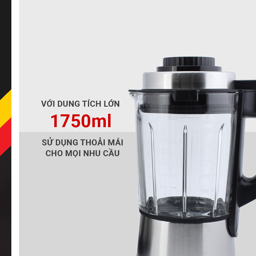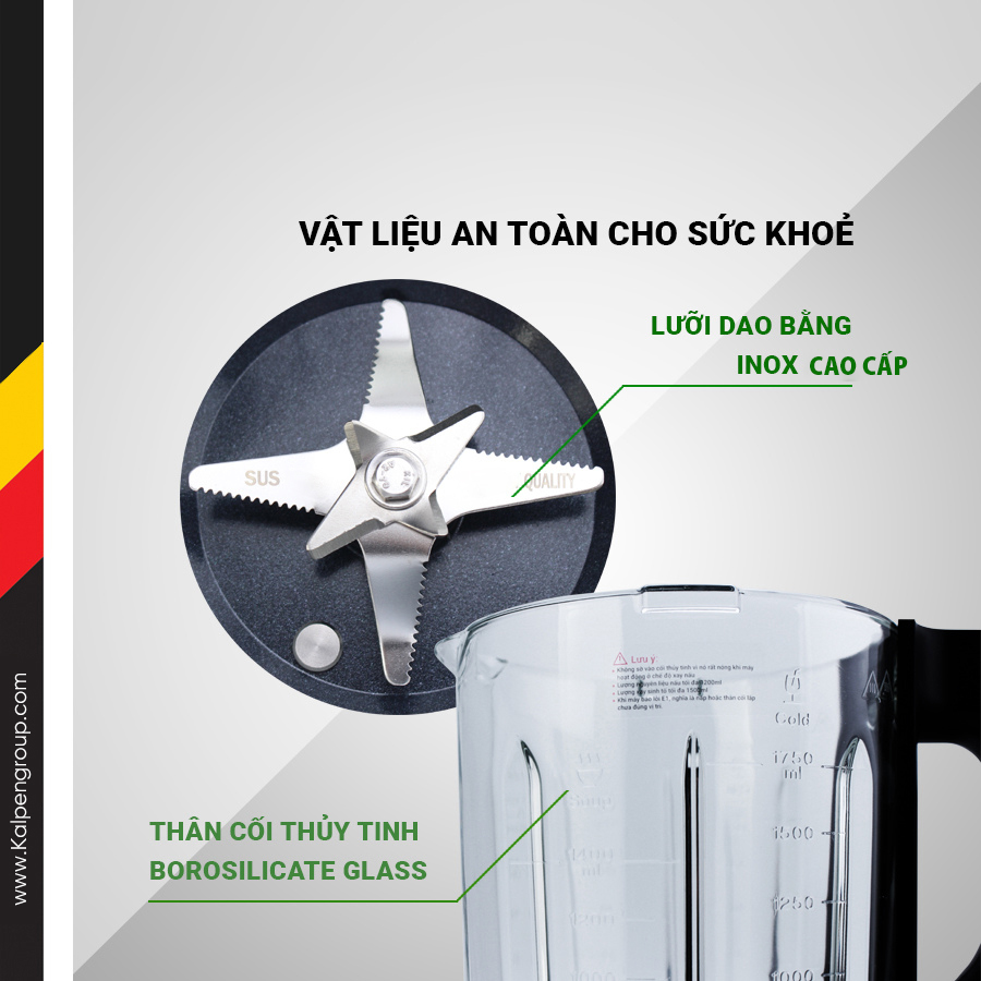 - Cối máy được làm từ thủy tinh borosilicate glass với 5 lớp chắc chắn có độ co giãn nhiệt từ -20 độ C đến 150 độ C.