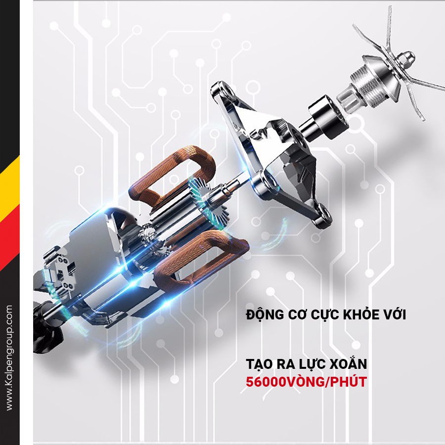 - Động cơ cực khỏe với công suất 1000W tạo ra lực xoắn với tốc độ 56000 r/phút. Với tốc độ cao máy phá vỡ thành tế bào thực phẩm một cách nhanh chóng giải phóng toàn bộ dinh dưỡng một cách dễ dàng.