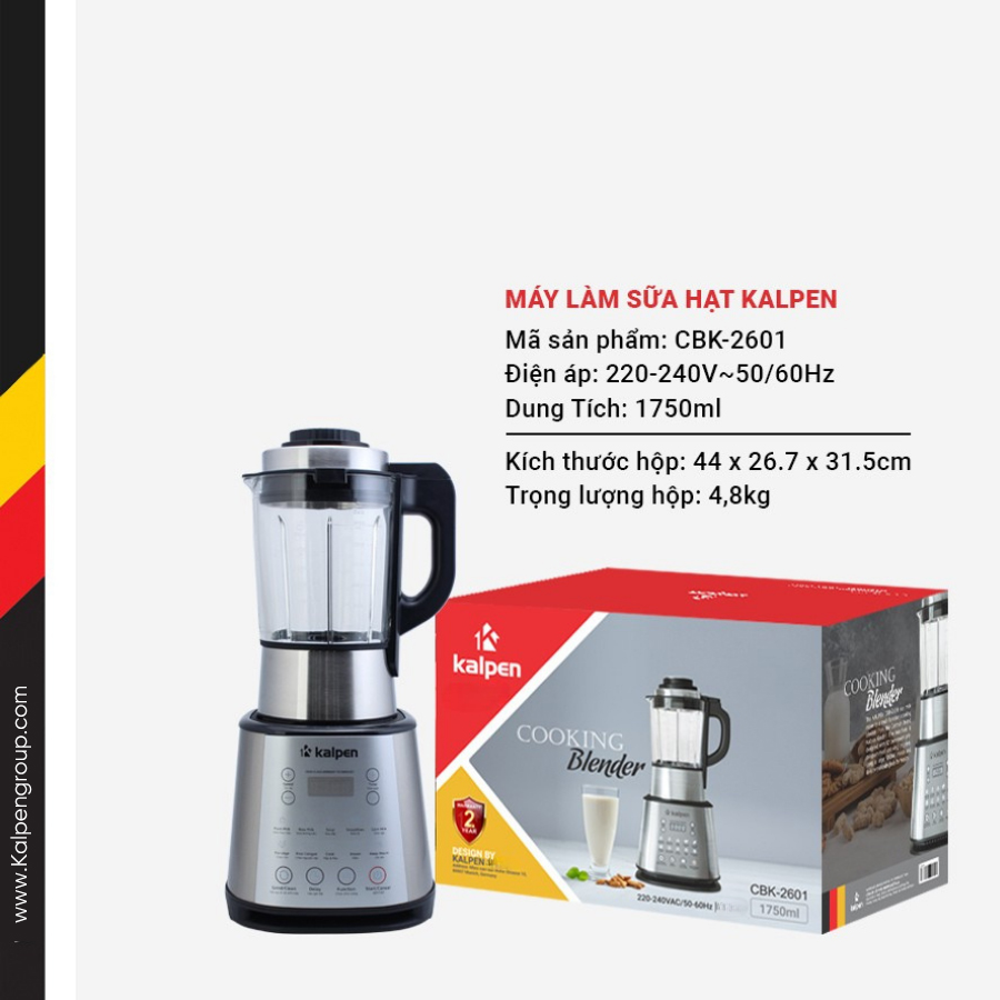 Trong mỗi gia đình thì máy làm sữa hạt là thiết bị rất cần thiết đặc biệt là chị em có niềm đam mê làm sữa từ loại hạt. Làm sữa từ hạt sẽ giúp tiết kiệm thời gian và chi phí cũng như đảm bảo an toàn cho cả gia đình, bổ sung những chất dinh dưỡng cần thiết từ các loại hạt thường ngày. Máy làm sữa hạt là một thiết bị gia dụng nhà bếp được sử dụng để chế biến các loại sữa hạt. Ngoài công dụng chính là chế biến sữa từ các loại hạt ngũ cốc như đậu nành, hạt hạnh nhân hay óc chó... nó còn có khả năng xay nấu cực kỳ tiện lợi. Hiện nay cũng có rất nhiều các thương hiệu đang phân phối về máy làm sữa hạt, trong đó có thương hiệu Kalpen cũng đang phân phối tới tay người tiêu dùng đó là Máy làm sữa hạt KALPEN CBK-2601.