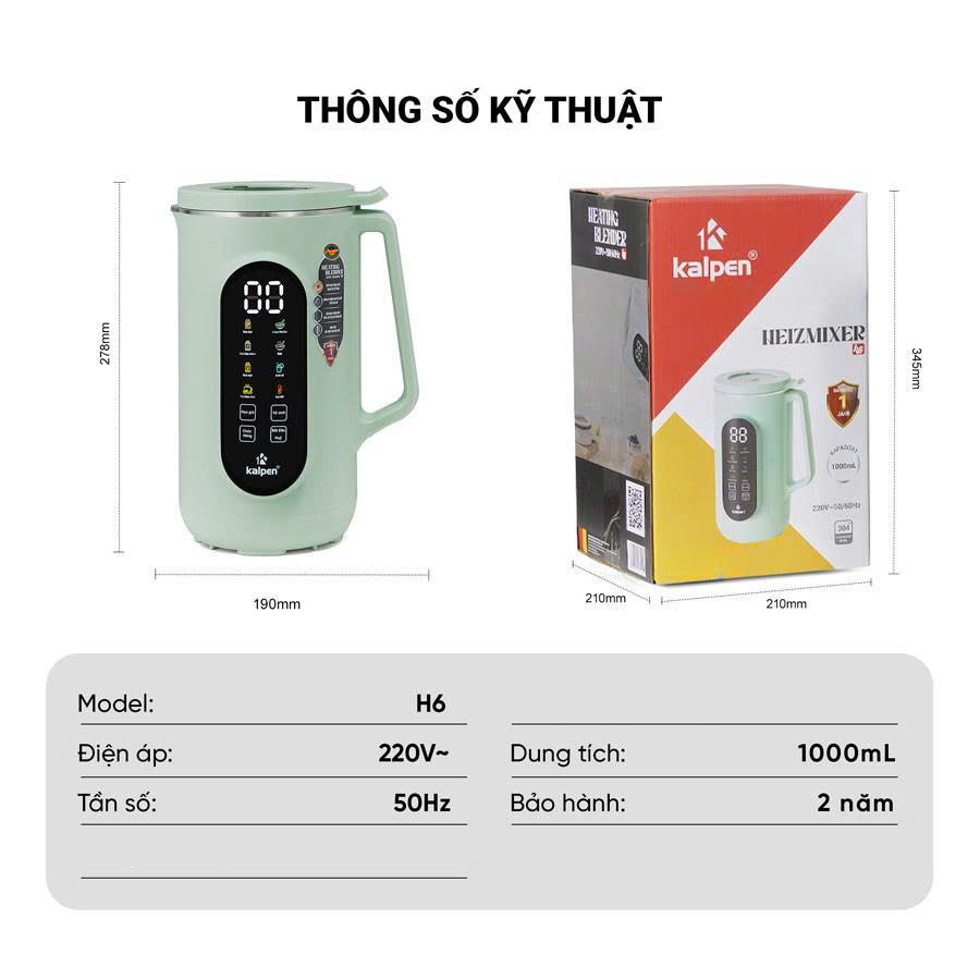 Kalpen H6 là dòng máy xay nấu đa năng đến từ thương hiệu Kalpen Group. Sản phẩm tích hợp nhiều chức năng như nấu sữa hạt, xay sữa hạt, làm sữa thảo mộc đa năng siêu mịn, nấu cháo, soup, xay sinh tố, pha trà… Vì thế bạn thỏa sức chế biến nhiều món ăn, đồ uống dinh dưỡng cho cả gia đình mà không mất nhiều dụng cụ hoặc thời gian để chế biến.