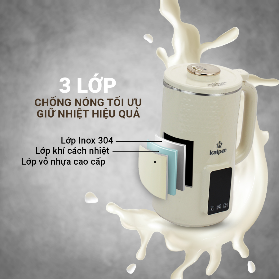 Máy làm sữa hạt Kalpen H3 sẽ không hoạt động nếu nắp của máy chưa được đậy hoặc đậy không đúng cách. Chức năng này nhằm bảo vệ an toàn cho người sử sụng trong suốt quá trình máy hoạt động và tránh chập cháy.