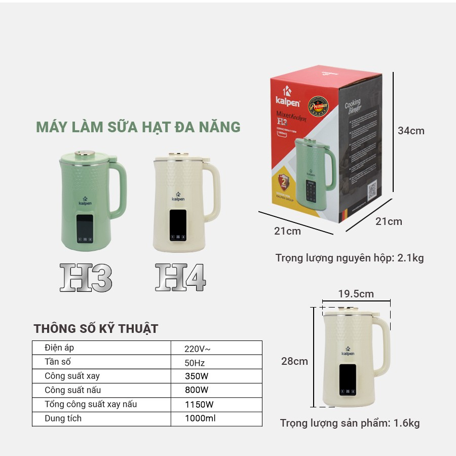 Sản phẩm được tích hợp nhiều tính năng như: nấu sữa hạt, xay sữa hạt, làm sữa thảo mộc đa năng siêu mịn, nấu cháo, sinh tố… Với công suất hoạt động cao, động cơ bền bỉ, thiết kế nhỏ gọn, màu sắc trang nhã máy làm sữa hạt Kalpen H3, H4 không chỉ mang đến cho gia đình những ly sữa hạt thơm ngon hấp dẫn, nhiều dinh dưỡng mà còn là một thiết bị hữu ích để bạn có thể chế biến thêm nhiều món ăn, đồ uống hấp dẫn cho gia đình.