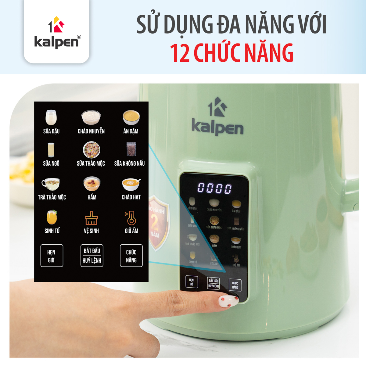 Máy hỗ trợ chức năng hẹn giờ lên đến 12 giờ, giúp người dùng chủ động chuẩn bị bữa sáng mà không cần dậy sớm. Chỉ cần cài đặt thời gian trước, máy sẽ tự động nấu và hoàn thành đúng thời điểm, mang đến những ly sữa hạt thơm ngon khi bạn thức dậy.