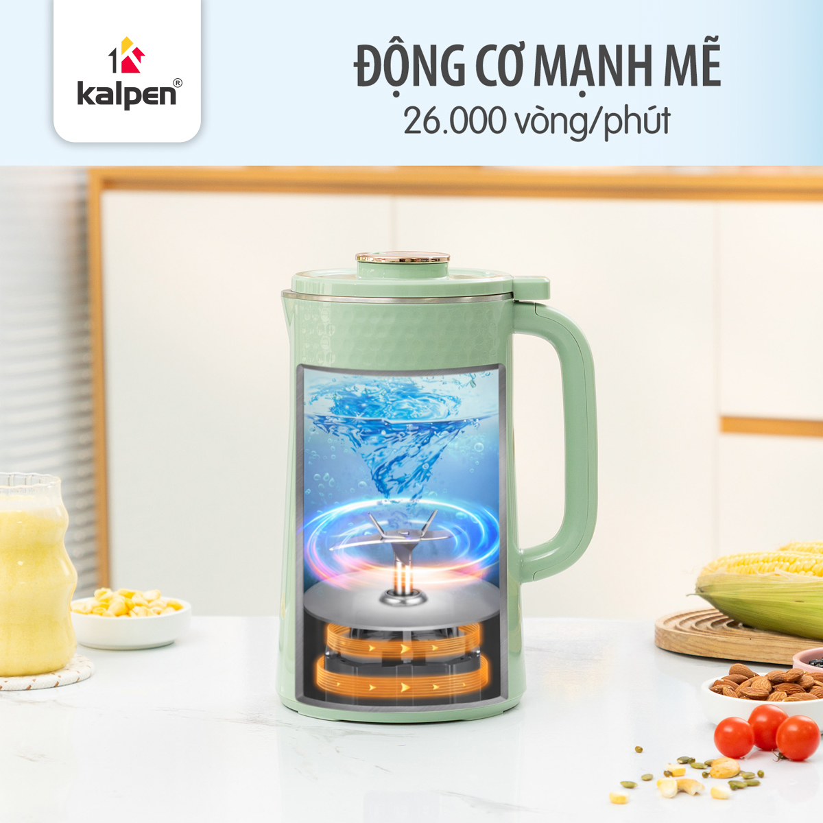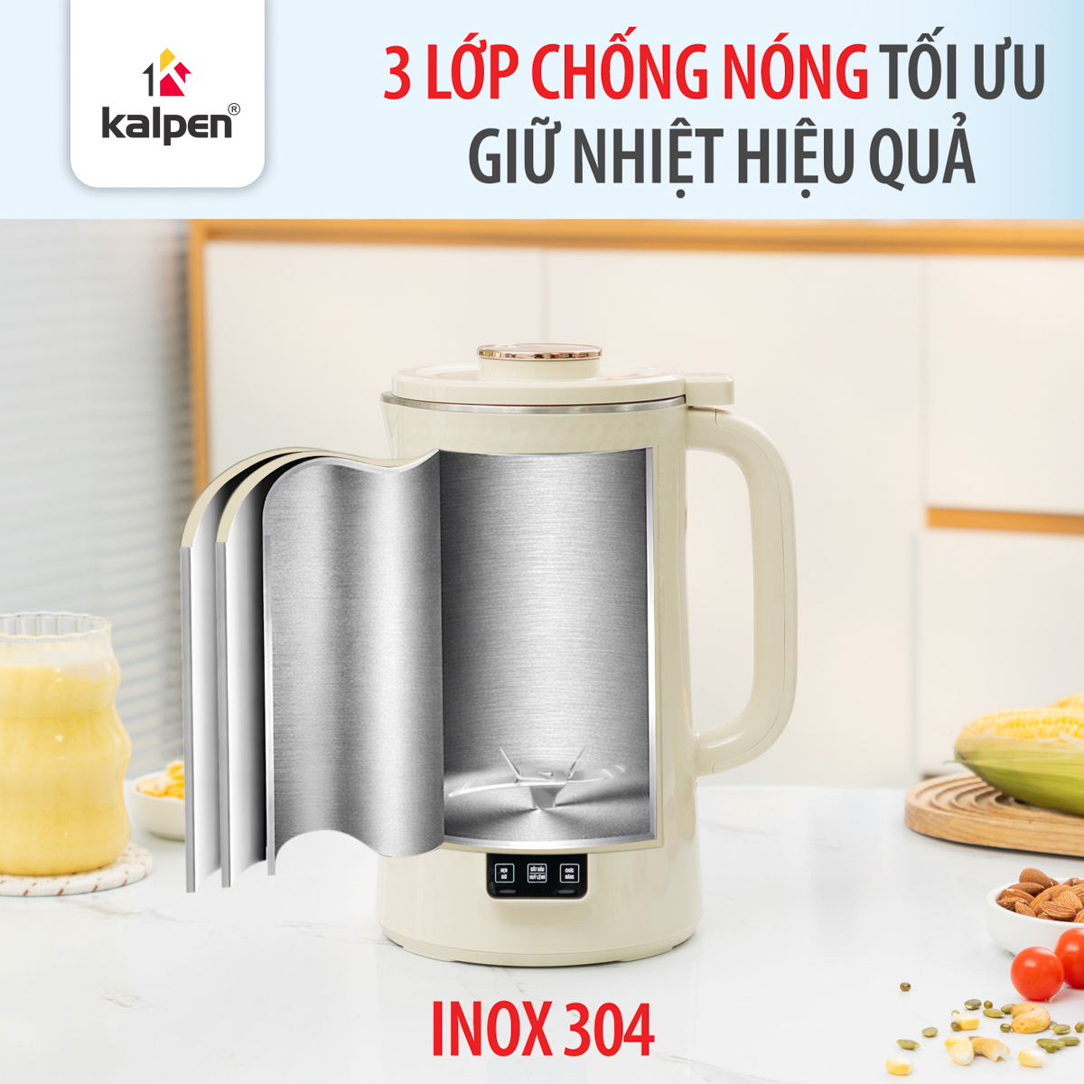 Máy nấu sữa hạt Kalpen được trang bị cối xay làm từ Inox 304 cao cấp, đảm bảo an toàn cho sức khỏe người dùng trong quá trình xay và nấu ở nhiệt độ cao. Chất liệu Inox 304 có khả năng chống ăn mòn tốt, không thôi nhiễm chất độc hại vào thực phẩm, giúp giữ trọn hương vị và giá trị dinh dưỡng của các loại sữa hạt và sữa thảo mộc.