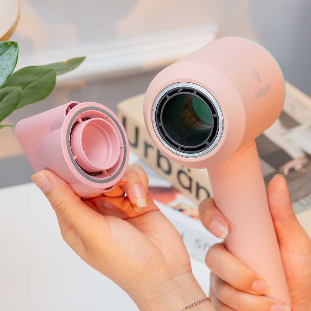 Máy sấy tóc tạo kiểu Kalpen được trang bị đầu sấy từ tính thông minh, giúp dễ dàng tháo lắp và điều chỉnh hướng gió. Đầu sấy được thiết kế dạng dẹt, tập trung luồng gió giúp bạn tạo kiểu tóc chính xác và chuyên nghiệp. Đây là điểm cộng cực lớn cho những ai yêu thích tự tạo kiểu tại nhà.