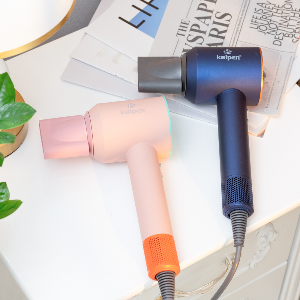 Máy sấy tóc tạo kiểu Kalpen sử dụng động cơ không chổi than DC hiện đại với tốc độ quay lên đến 110.000 vòng/phút, cho khả năng thổi gió mạnh mẽ với hai cấp độ gió: