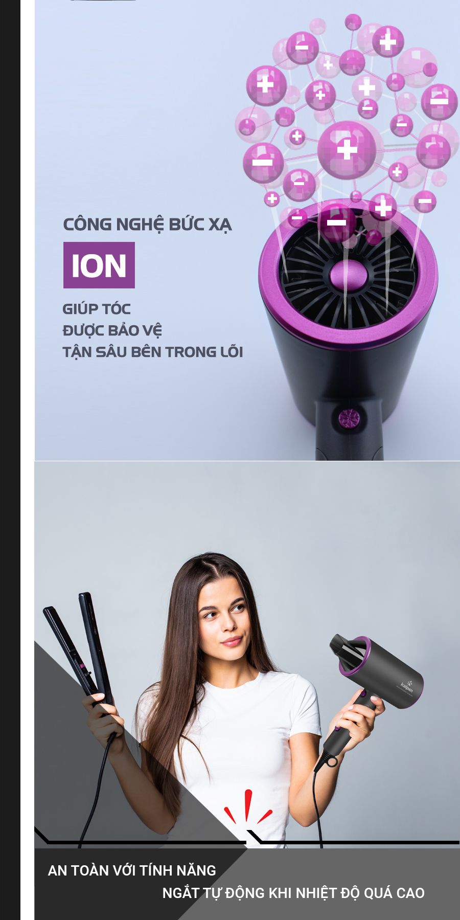 Bạn lo lắng khi sử dụng máy sấy tóc nhiều thì tóc sẽ bị xơ và dễ gãy rụng? Kalpen chúng tôi đã lưu ý vấn đề này trước khi đưa sản phẩm vào sản xuất để giới thiệu tới người tiêu dùng. Vì Kalpen đã sử dụng công nghệ đột phá tích hợp trong máy sấy tóc với việc sử dụng công nghệ bức xạ Ion giúp tóc được bảo vệ sâu tận bên trong lõi tóc và không lo lắng tóc bị khô và gãy rụng.