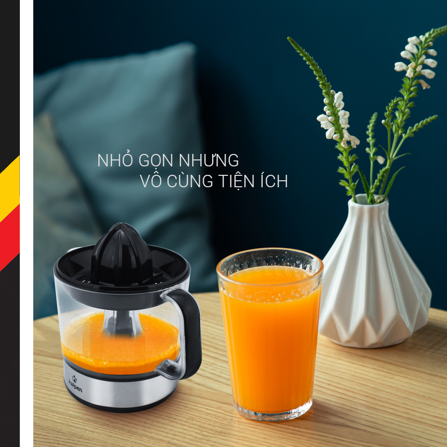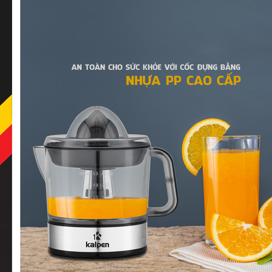 Nước cam ép là một thức uống rất được ưa chuộng và sử dụng phổ biến hiện nay. Bởi lượng lớn thành phần khoáng chất, flavonoid và vitamin C vô cùng tốt cho sức khỏe của người dùng. Để làm nên một món đồ uống này bạn có thể vắt cam bằng tay, tuy nhiên năng suất và hiệu quả không cao, đôi khi không bảo đảm vệ sinh. Chính vì vậy việc lựa chọn máy vắt cam được xem là một giải pháp phù hợp với những gia đình thường xuyên có nhu cầu sử dụng. Với việc sở hữu máy vắt cam sẽ giúp bạn tiết kiệm thời gian và công sức của bản thân để có thể dành thời gian vào những việc khác nhau mà bạn vẫn có thể tận hưởng được cốc nước ép cam thơm ngon và chứa nhiều chất dinh dưỡng cho cơ thể bạn. Hiện nay, Kalpen cũng đang phân phối dòng sản phẩm máy ép cam với nhiều công dụng và chức năng vượt trội mà bạn có thể hoàn toàn tham khảo và an tâm khi lựa chọn sử dụng sản phẩm.