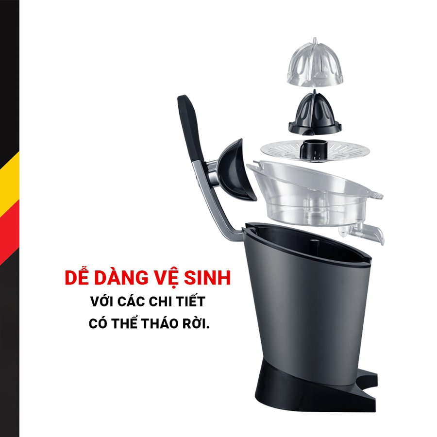 2. Dễ dàng thao tác và sử dụng với cần ép dài, giúp bạn không phải tiếp xúc trực tiếp với thực phẩm mà vẫn đảm bảo cam được vắt kiệt nước và vệ sinh trong quá trình sử dụng. Do vậy, với thiết kế này thì bạn hoàn toàn thao tác dễ dàng hơn với thiết bị mà không phải tiếp xúc trực tiếp mà vẫn nhận được những thức uống thơm ngon, bổ dưỡng hàng ngày.