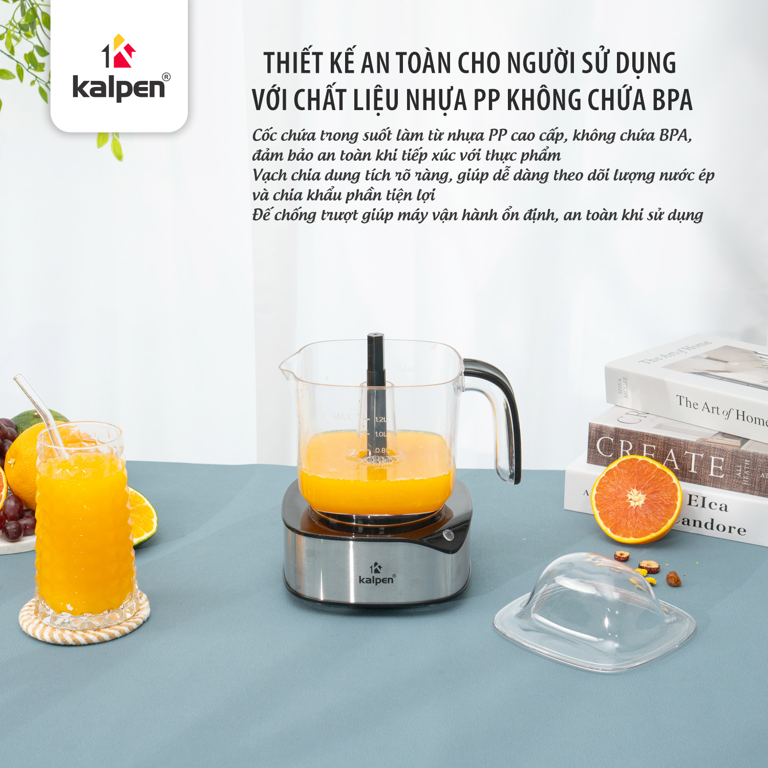 Cốc đựng làm từ nhựa PP trong suốt giúp bạn dễ dàng theo dõi lượng nước ép trong quá trình sử dụng, tiện kiểm soát dung tích và đảm bảo an toàn cho sức khỏe.