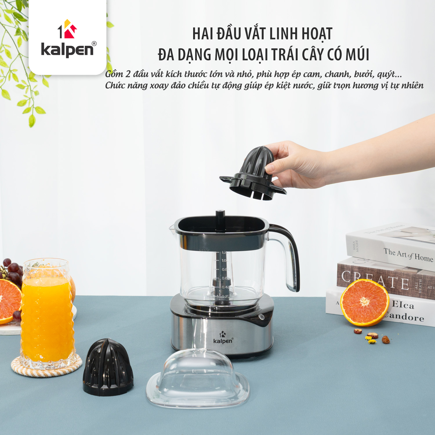 Trang bị hai múi ép với kích thước khác nhau, phù hợp cho cả trái nhỏ và trái lớn, giúp vắt cam, quýt, chanh… hiệu quả hơn và tận dụng tối đa lượng nước ép.