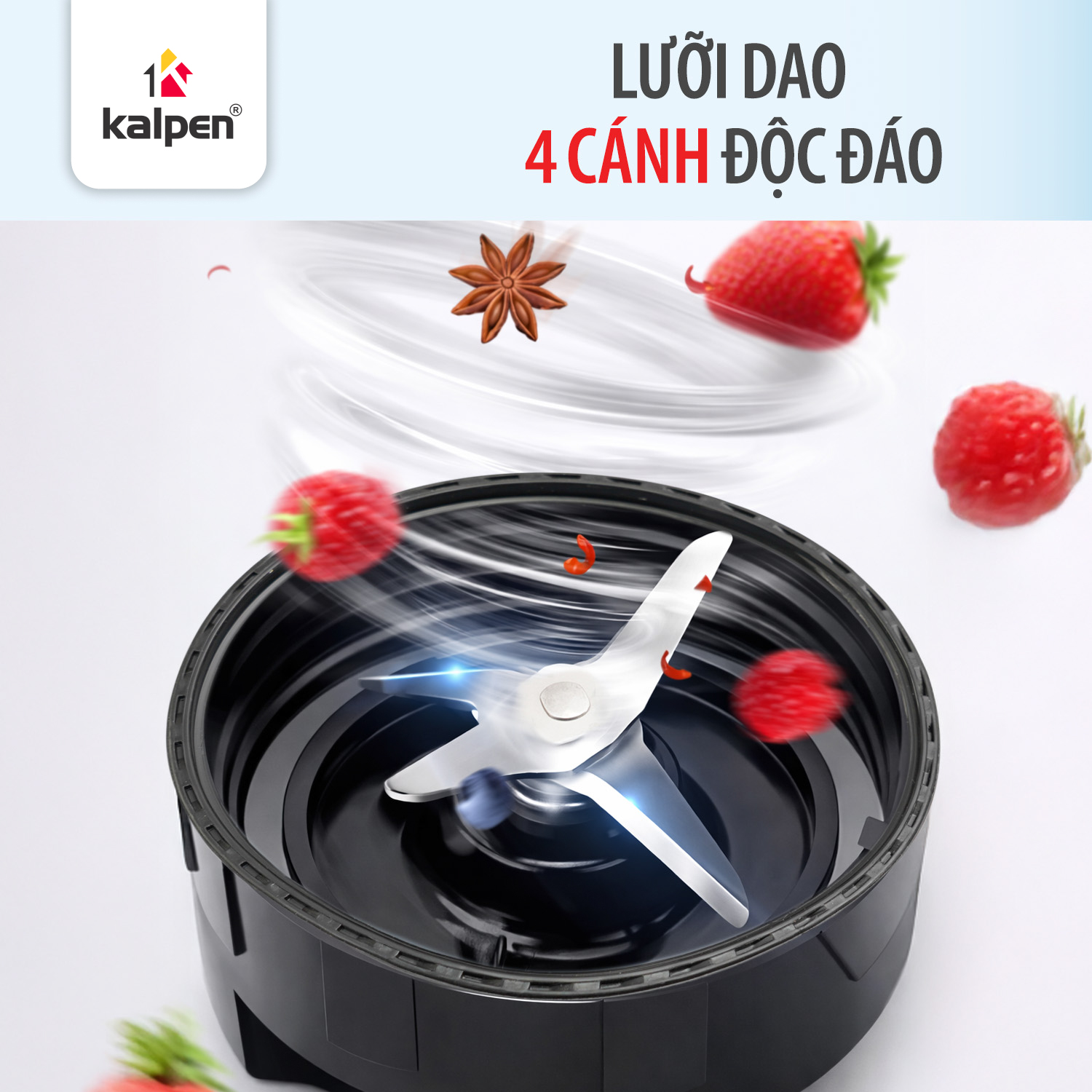 Thiết kế lưỡi dao 4 cánh với đường kính lớn và sắc bén giúp máy xay hiệu quả hơn, cho phép cắt nát và trộn lẫn các nguyên liệu một cách dễ dàng. Điều này không chỉ tối ưu hóa quá trình xay, mà còn tạo ra các bọt khí nhỏ, mang lại kết cấu mịn màng và đặc biệt cho các món sinh tố và súp.
