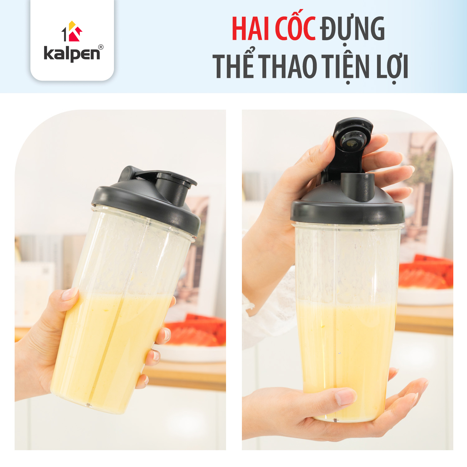 Với hai cốc đựng thể thao có dung tích 750 ml và 500 ml, máy xay sinh tố này đáp ứng hoàn hảo nhu cầu của những người yêu thích uống sinh tố hàng ngày. Cốc được làm từ nhựa nguyên sinh cao cấp, không chứa BPA, đảm bảo an toàn cho sức khỏe. Bạn có thể xay sinh tố trực tiếp trong cốc và mang theo mọi nơi mà không cần chuyển sang bình khác.