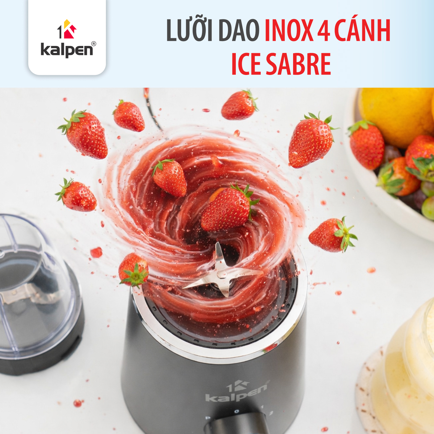 Điểm nổi bật khác của máy xay sinh tố Kalpen B9 chính là lưỡi dao Inox 4 cánh chất lượng cao, không gỉ sét và luôn sắc bén. Thiết kế Ice Sabre chuyên dụng giúp máy nghiền nát đá viên, xay hoa quả đông lạnh, hay trộn đều nguyên liệu để tạo nên những món sinh tố mịn mượt.