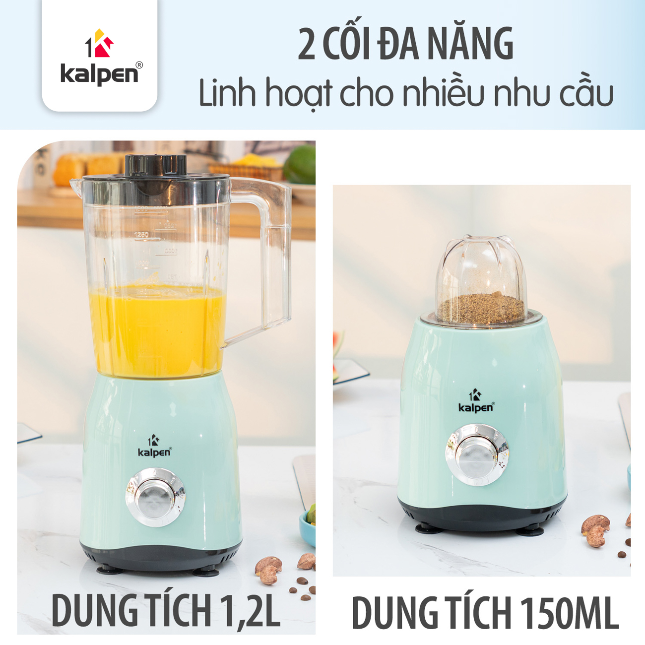 Máy xay sinh tố Kalpen AR210 được thiết kế dạng 2 trong 1, gồm 1 cối lớn để xay sinh tố, rau củ, trái cây và 01 cối nhỏ chuyên xay hạt, gia vị. Thiết kế này giúp bạn linh hoạt sử dụng cho nhiều mục đích khác nhau, tiết kiệm chi phí và không gian so với việc mua nhiều thiết bị riêng biệt.