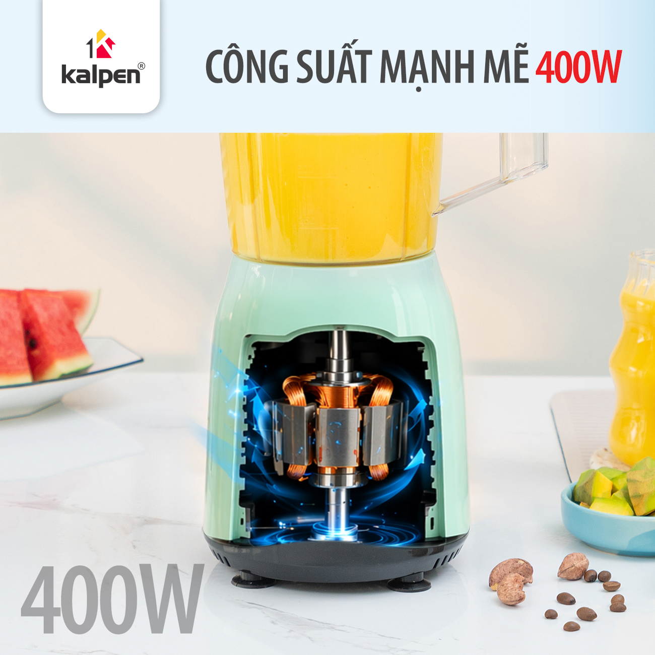Với công suất 400 W, Kalpen AR210 đảm bảo khả năng vận hành bền bỉ và mạnh mẽ. Mức công suất này cho phép máy xử lý nhanh chóng nhiều loại trái cây và thực phẩm khác nhau, giúp động cơ chạy êm ái mà vẫn đạt hiệu quả cao, đáp ứng tốt nhu cầu sử dụng hàng ngày của gia đình.
