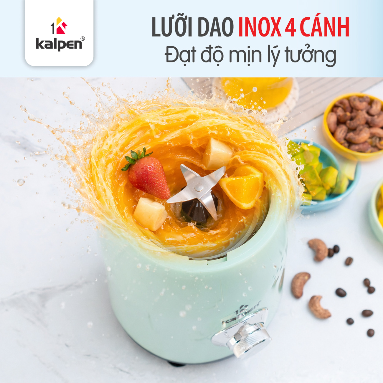 Trang bị lưỡi dao 4 cánh Inox 201, Kalpen AR210 xay nhuyễn nhanh chóng, cho kết cấu sánh mịn đồng đều. Chất liệu thép không gỉ vừa đảm bảo an toàn cho gia đình, vừa tiết kiệm thời gian vệ sinh sau mỗi lần dùng.