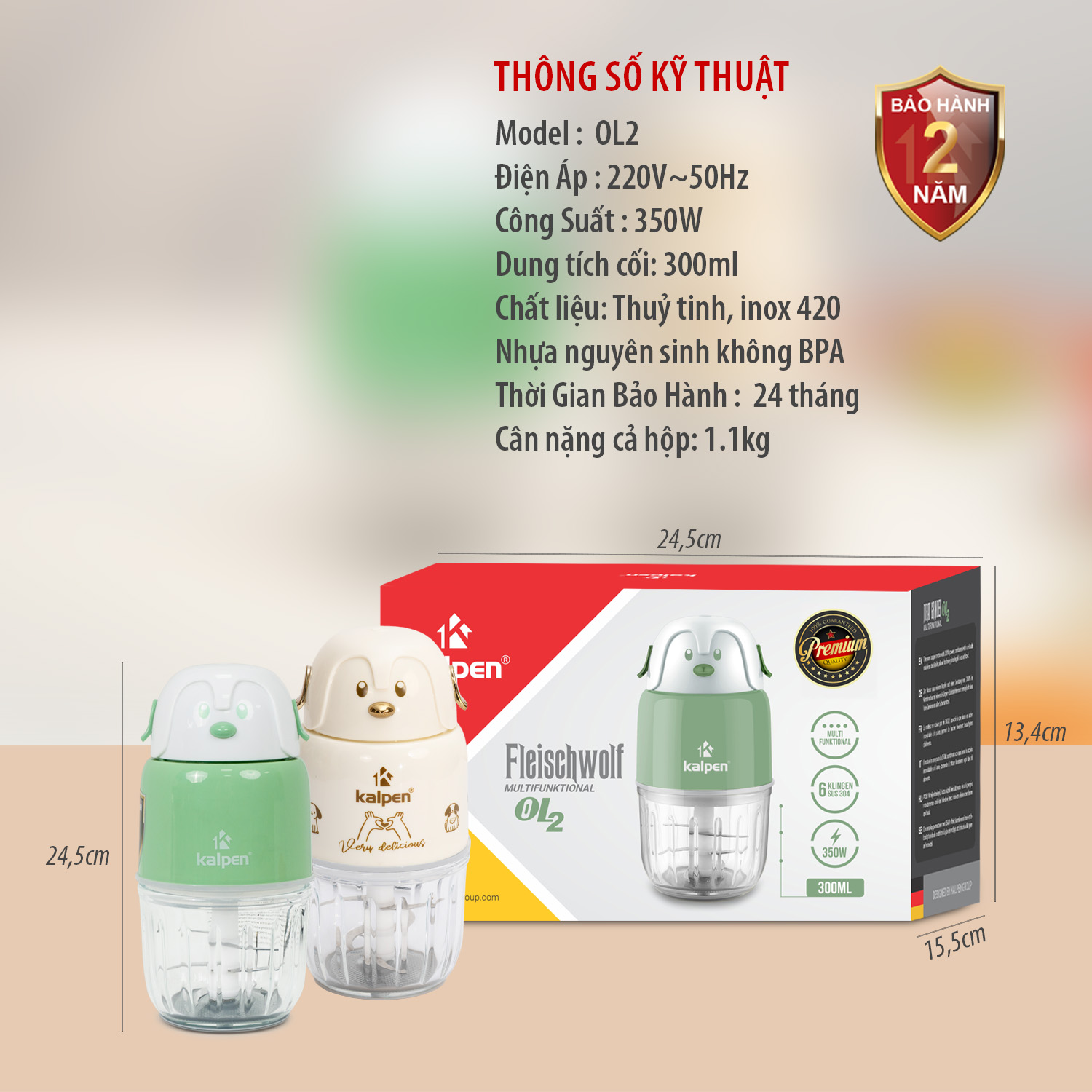 Máy xay thịt đa năng Kalpen OL2 không chỉ là sản phẩm tiện ích phù hợp với tất cả nhà bếp Việt mà đây là một vật dụng vô cùng hữu ích, đáng tin cậy đối với các mẹ trong việc chăm sóc bé yêu ở thời kỳ ăn dặm. Thiết kế hiện đại, tính năng vượt trội và sự an toàn tuyệt đối, máy xay thịt đa năng Kalpen mang đến giải pháp hoàn hảo cho bữa ăn dinh dưỡng và tiện lợi.