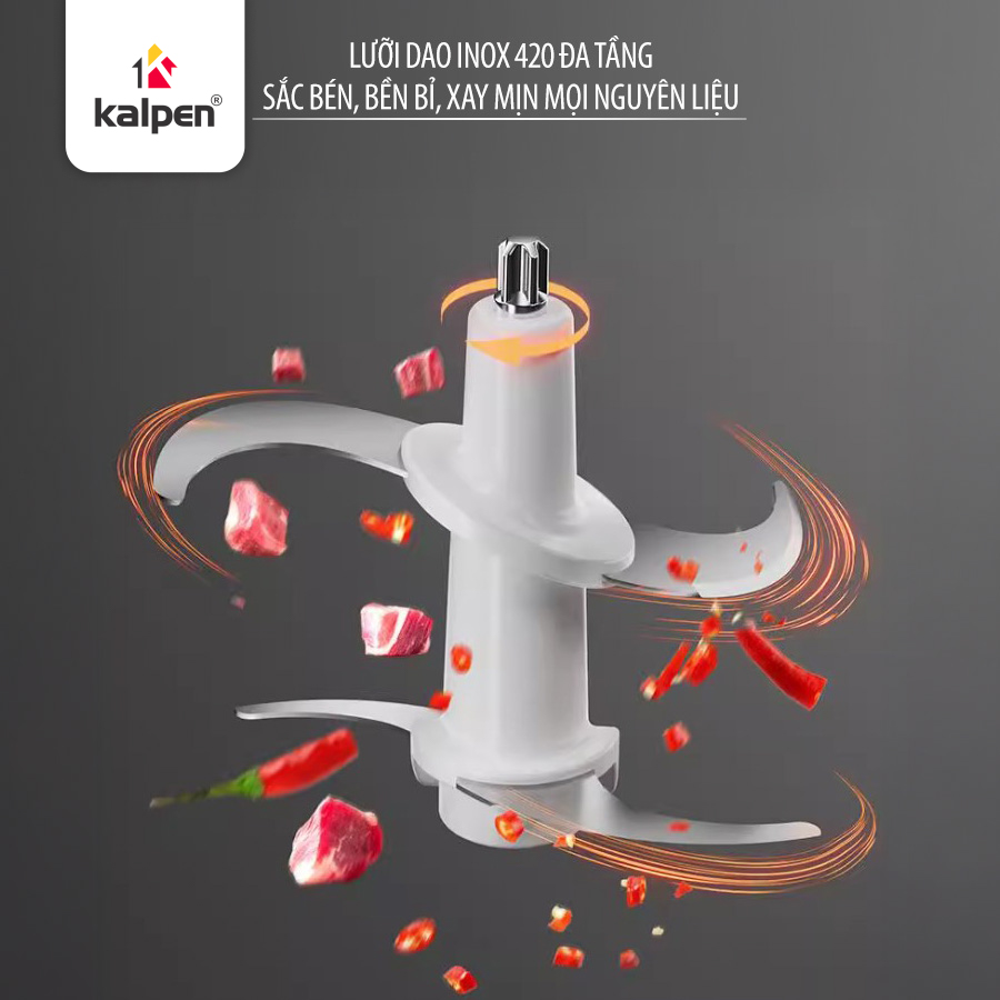 Lưỡi dao làm từ thép không gỉ Inox 420 có độ cứng cao và khả năng chống ăn mòn tốt. Với thiết kế lưỡi dao đa tầng, máy xay đảm bảo xay nhuyễn mọi loại thực phẩm, từ thịt, cá đến rau củ và các loại hạt cứng.