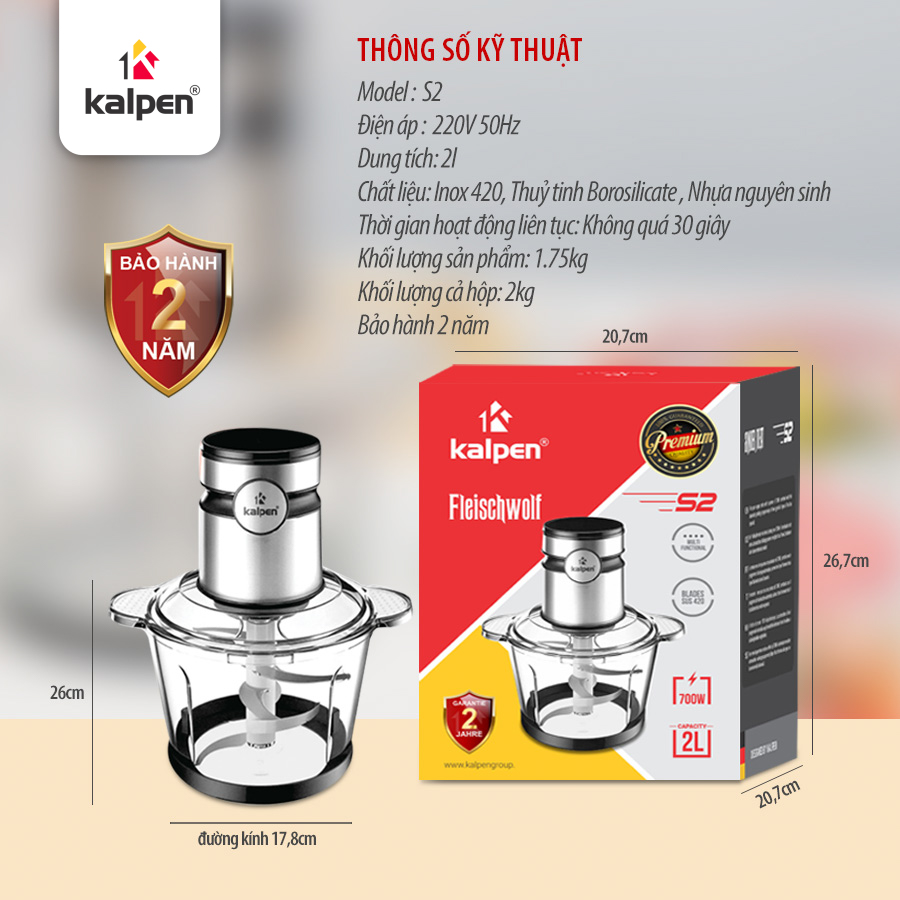 Video giới thiệu máy xay thịt đa năng cối thuỷ tinh Kalpen S2 2 L