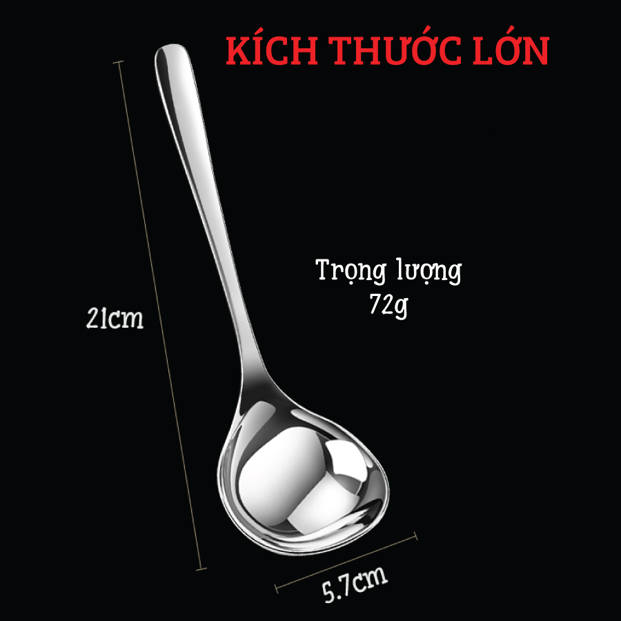 Sản phẩm có kích thước phù hợp với nhiều nhu cầu sử dụng: dài 20cm, đường kính lòng muôi 5.7cm, trọng lượng 72g.