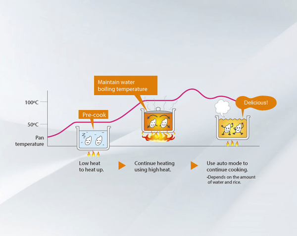 Sử dụng chíp điện tử và mâm nhiệt để làm chín cơm hoặc thức ăn. |