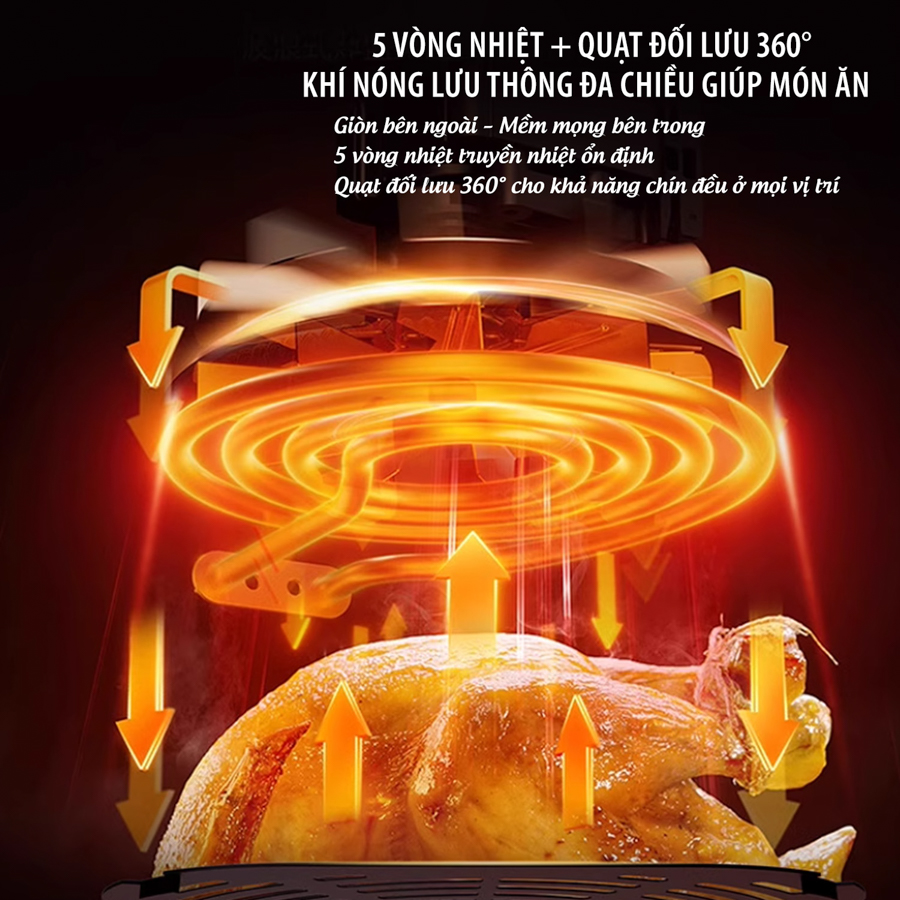 Công nghệ gia nhiệt: 5 vòng nhiệt + quạt đối lưu khí nóng 360°