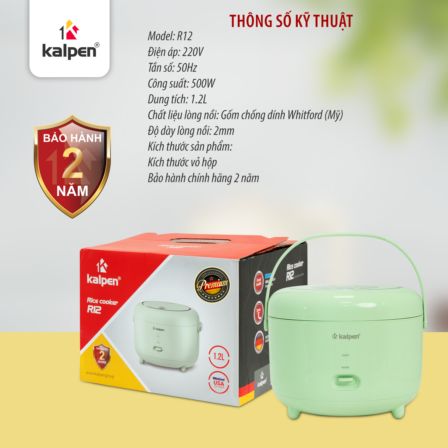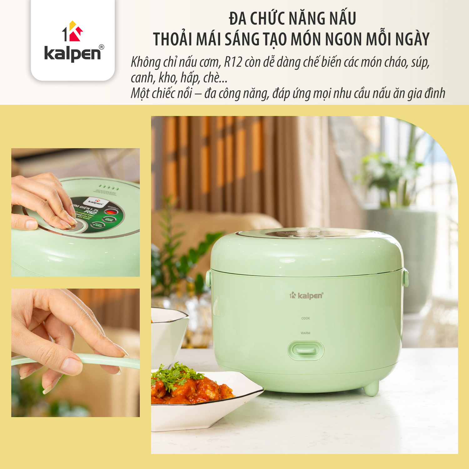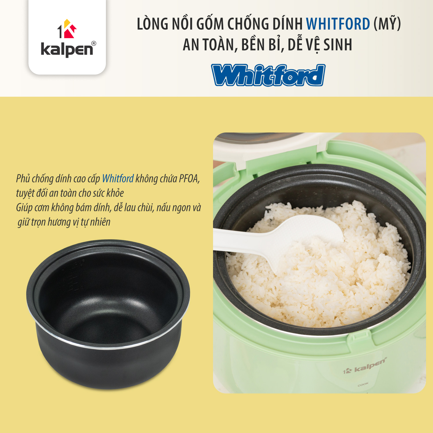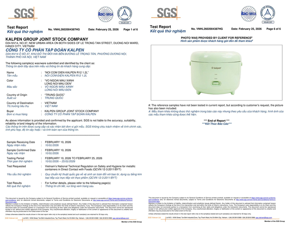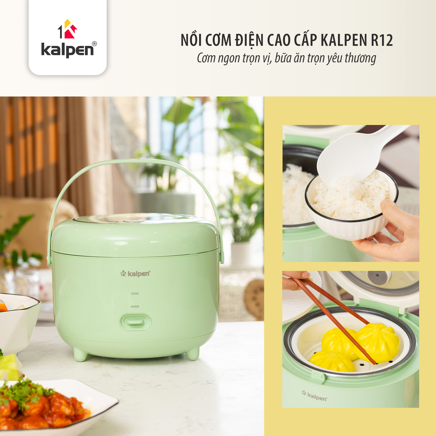 Nồi cơm điện là sản phẩm của Tập đoàn Kalpen, được sản xuất theo tiêu chuẩn chất lượng cao, đảm bảo độ an toàn, độ bền và hiệu suất sử dụng ổn định.