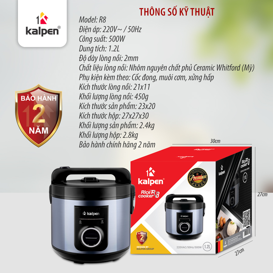 Nồi Kalpen R8 có dung tích lên tới 1.2 L, có thể nấu cho nhiều người ăn cùng lúc (3–4 người).