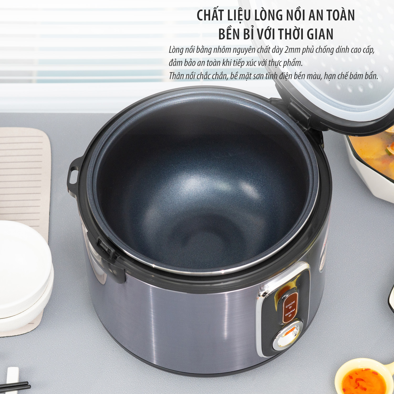 Phủ lòng nồi là lớp chống dính cao cấp giúp cho cơm nấu không bị dính sát vào lòng nồi không gây cháy khét và dễ dàng vệ sinh sau khi sử dụng.