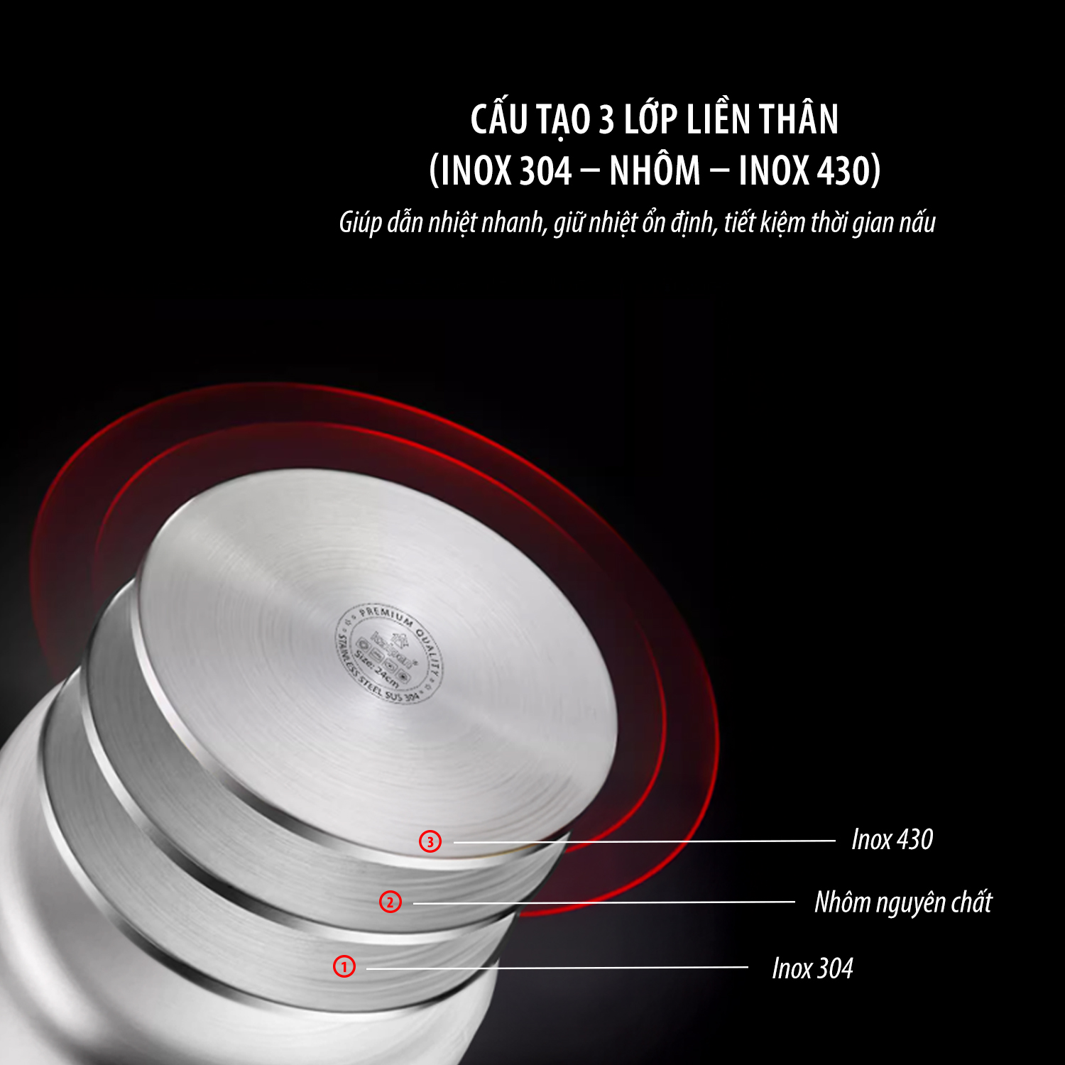 Tùy theo nhu cầu sử dụng mà người dùng cũng có thể chọn mua nồi theo kích phù hợp với nhu cầu của gia đình hoặc mua cả bộ sản phẩm với 3 kích thước nồi khác nhau để tạo sự đồng bộ trong không gian nhà bếp.