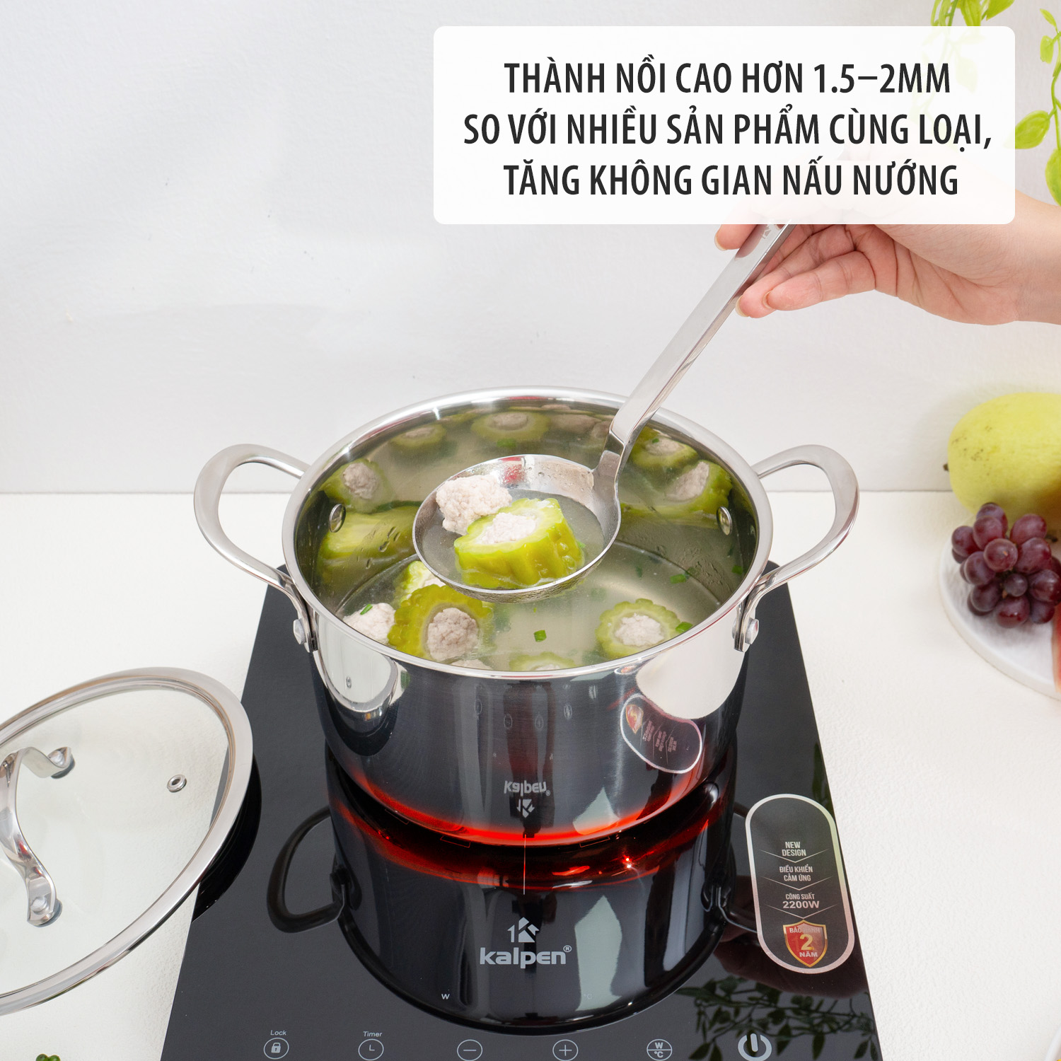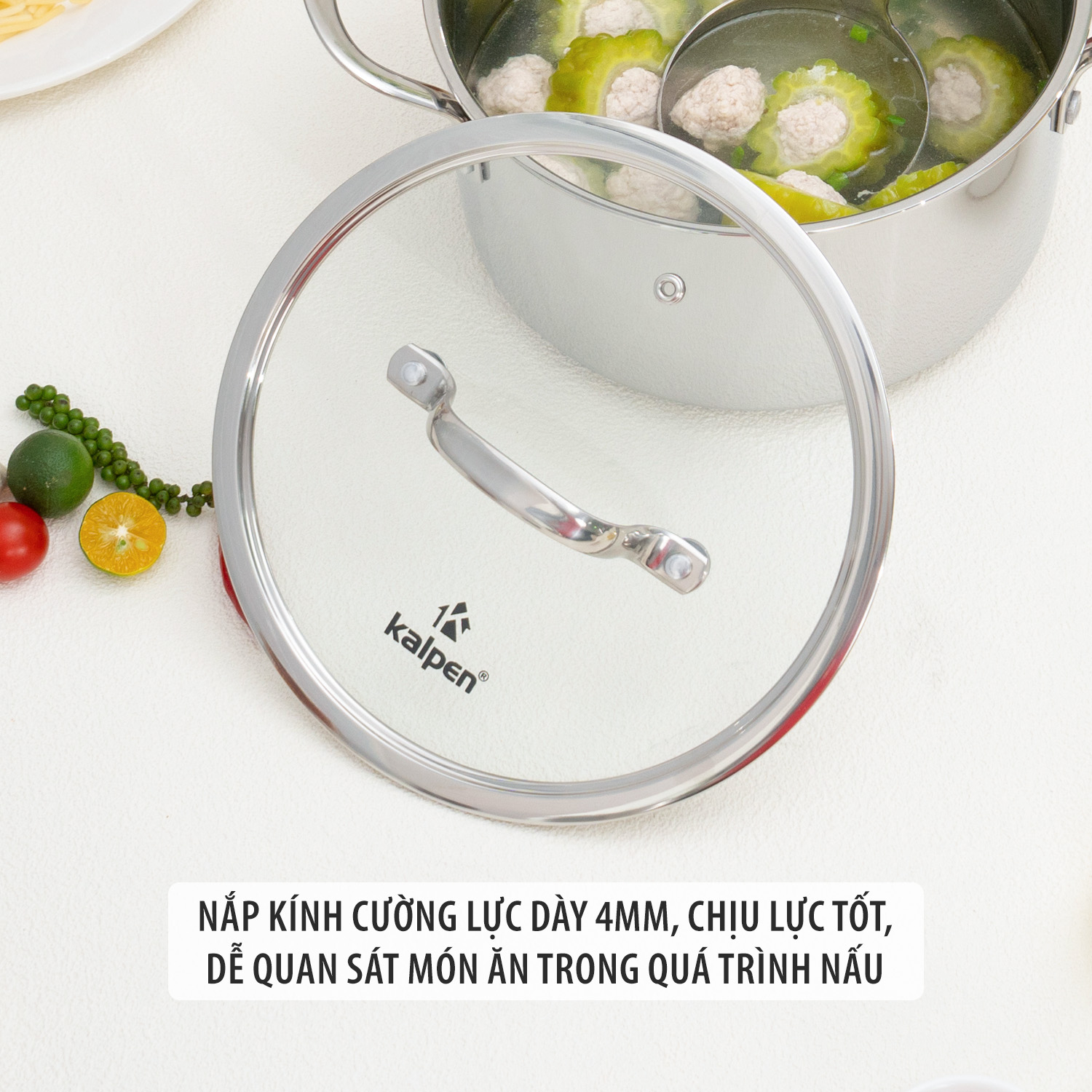Nồi Inox 304 liền khối Kalpen Kampfer mang vẻ đẹp theo tiêu chuẩn cao. Nồi được làm từ inox cao cấp sáng bóng, đep mắt, tạo nên nét hiện đại cho không gian nhà bếp.