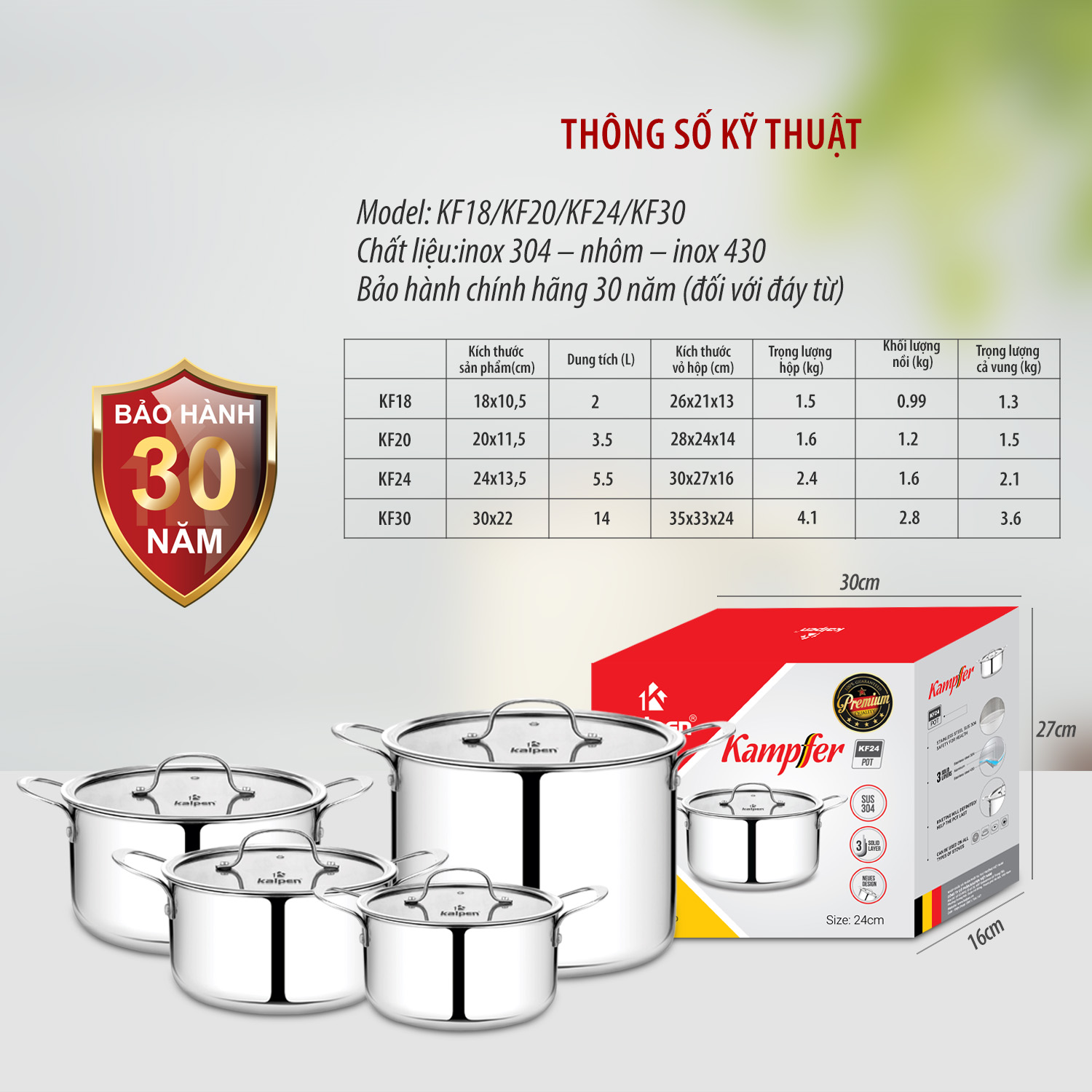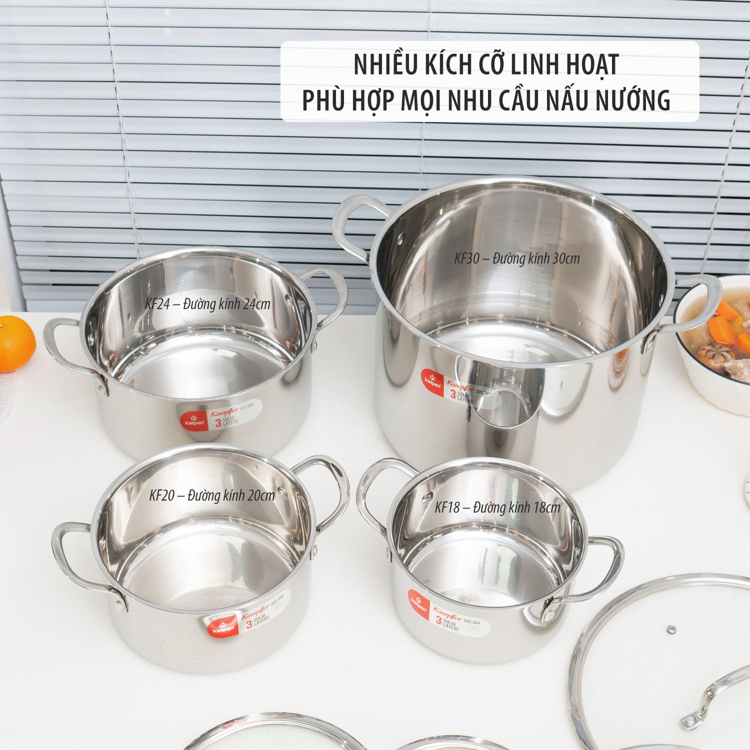 Nồi Kalpen Kampfer với 3 kích thước cơ bản là 18cm, 20cm và 24cm phù hợp sử dụng để nấu nướng, chế biến đồ ăn cho gia đình từ 4-6 người.