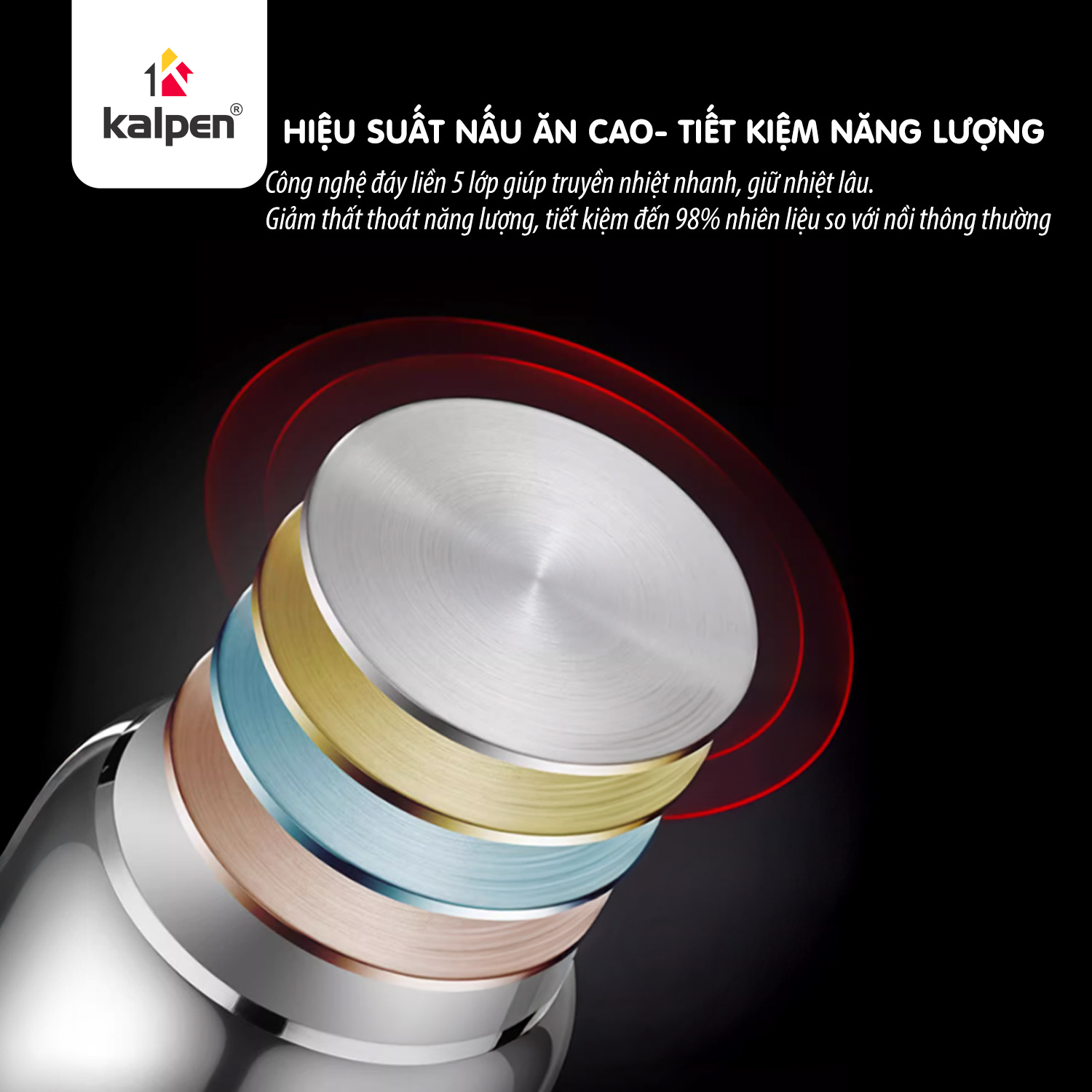 Nhờ cấu trúc 5 lớp liền thân và khả năng phân bổ nhiệt đồng đều, thực phẩm chín nhanh, chín đều, hạn chế cháy khét hay bám dính. Sản phẩm giúp tiết kiệm nhiên liệu lên đến 98%, nâng cao hiệu suất nấu nướng.