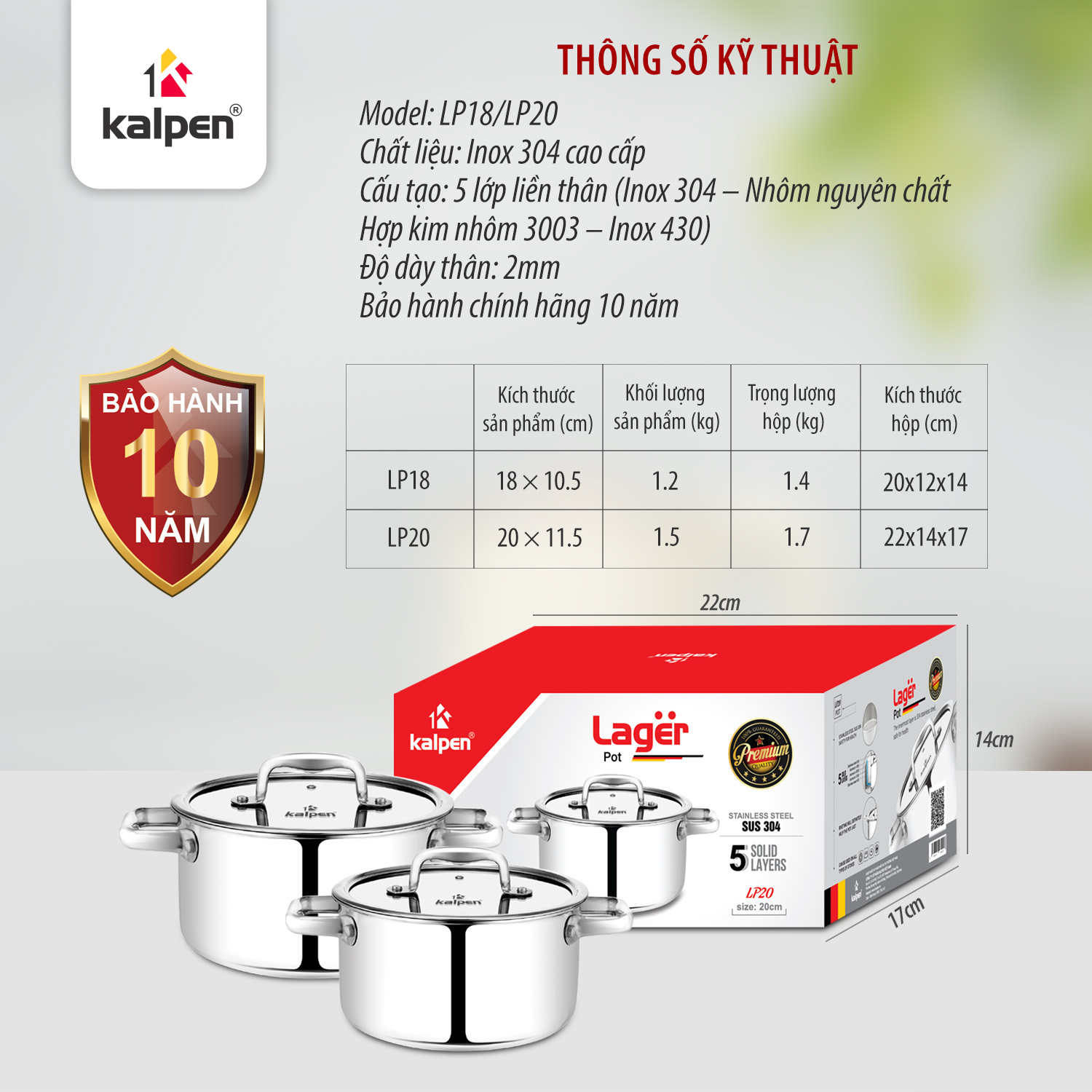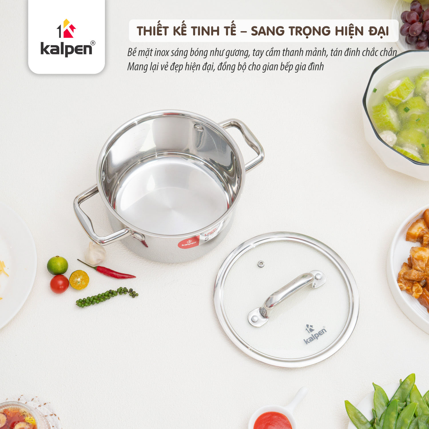 Nồi được cấu tạo 5 lớp liền thân gồm lớp Inox 304 trong cùng an toàn cho sức khỏe, hai lớp nhôm nguyên chất 1050 giúp dẫn nhiệt nhanh, lớp hợp kim nhôm 3003 có tác dụng lưu trữ nhiệt ổn định, lớp Inox 430 ngoài cùng giúp sinh nhiệt hiệu quả khi sử dụng trên bếp từ và các loại bếp thông thường.