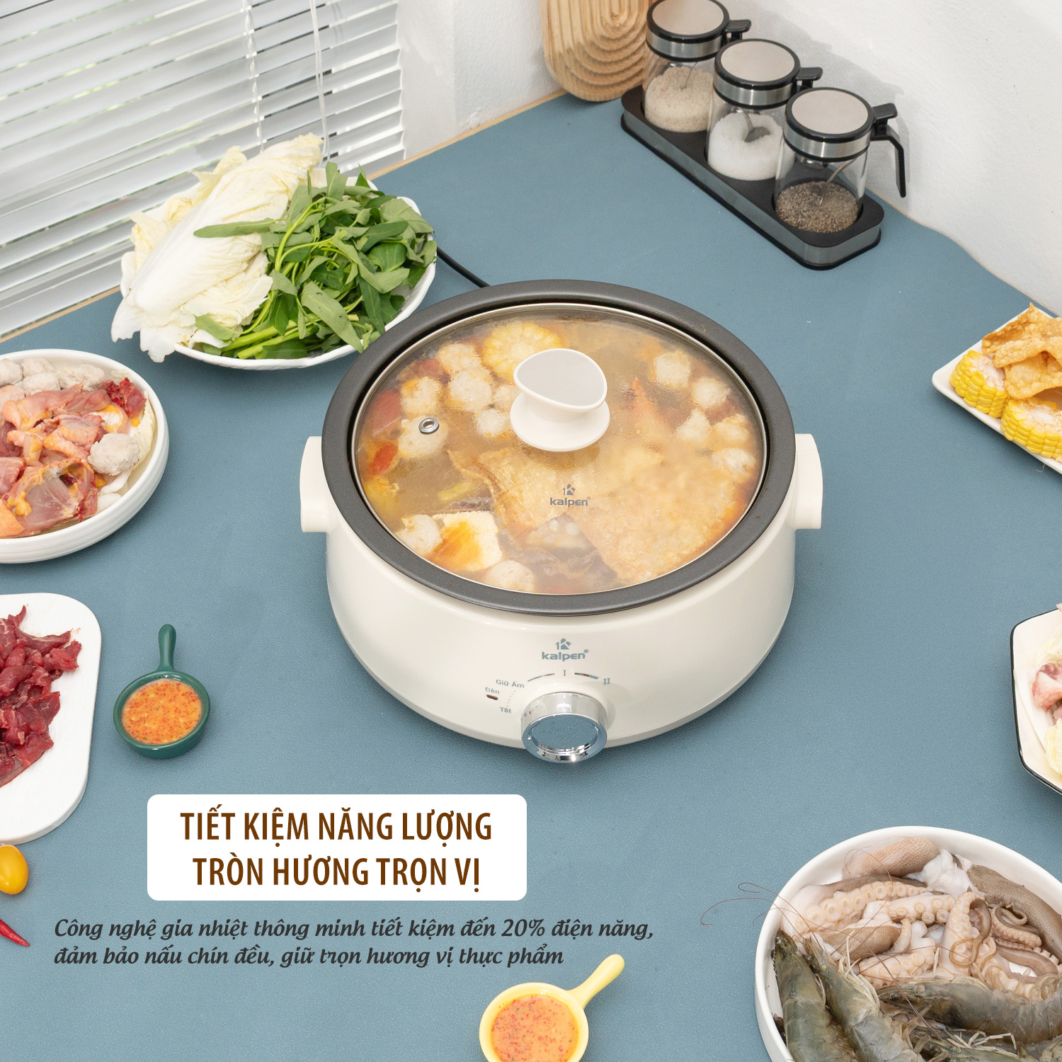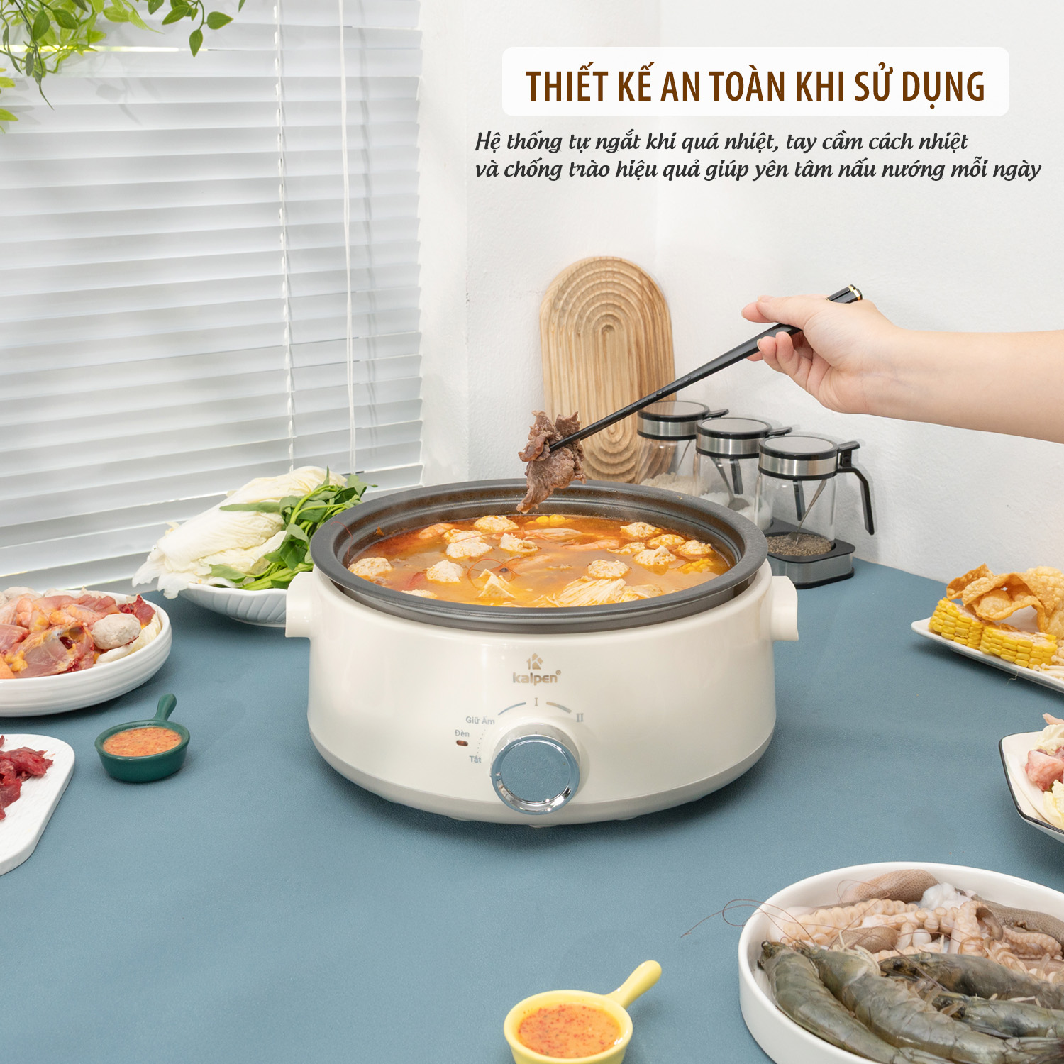 Nồi lẩu điện Kalpen 5L là một chiếc nồi đa năng có thể phục vụ được nhiều nhu cầu nấu nướng từ bữa ăn hàng ngày tới cả những bữa tiệc tùng, tiếp khách.