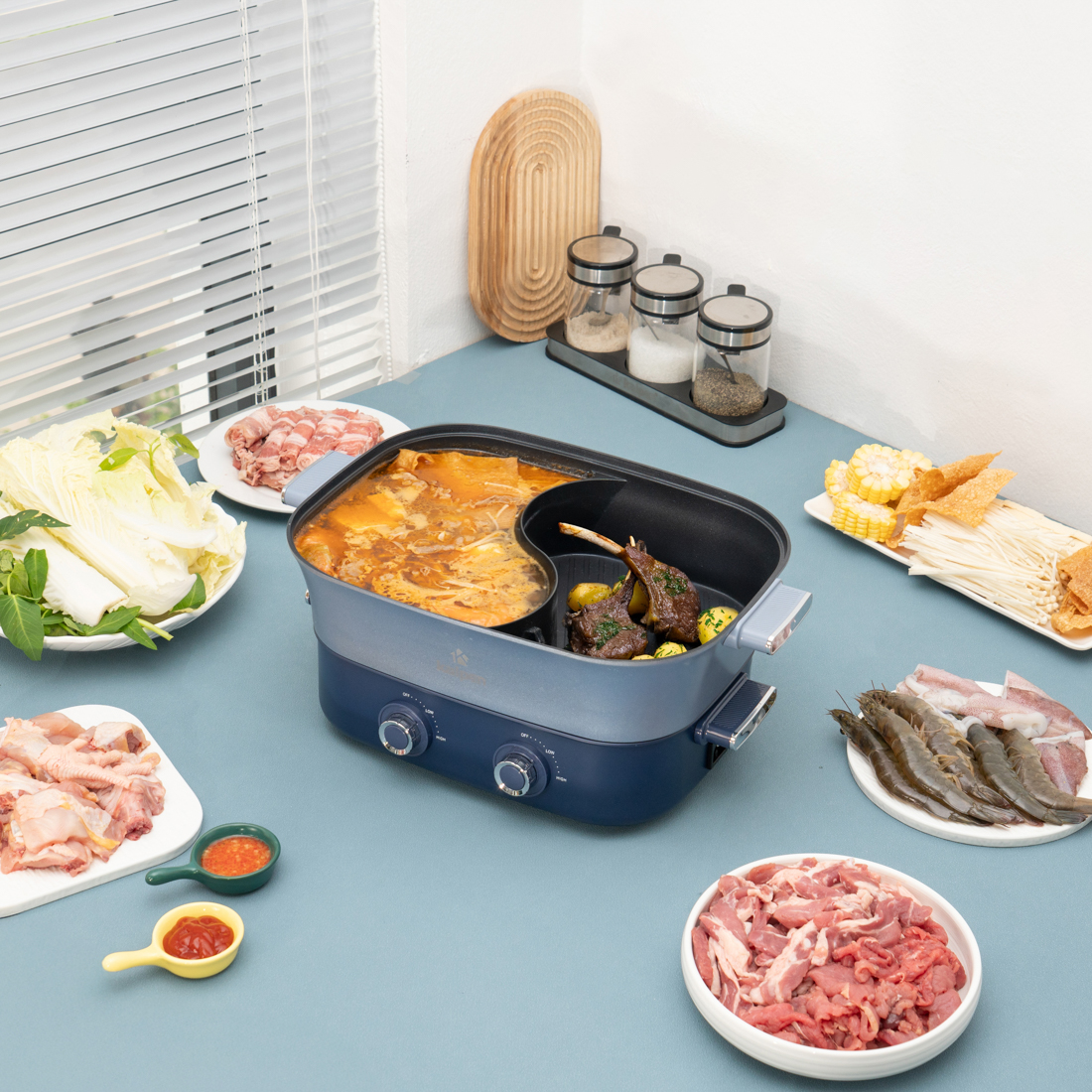 Thay vì mua nhiều dụng cụ riêng lẻ cho từng món ăn, chỉ cần một chiếc nồi lẩu điện ngăn tháo rời, bạn đã có thể: