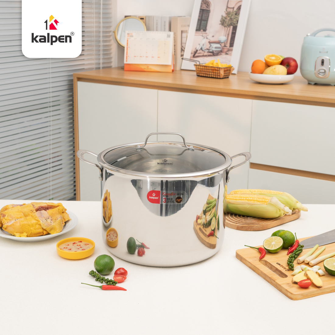 Nồi luộc gà Kalpen Kampfer tương thích với mọi loại bếp hiện đại như bếp từ, bếp hồng ngoại, bếp điện hay bếp gas, mang lại sự tiện lợi cho người dùng trong mọi không gian nhà bếp.