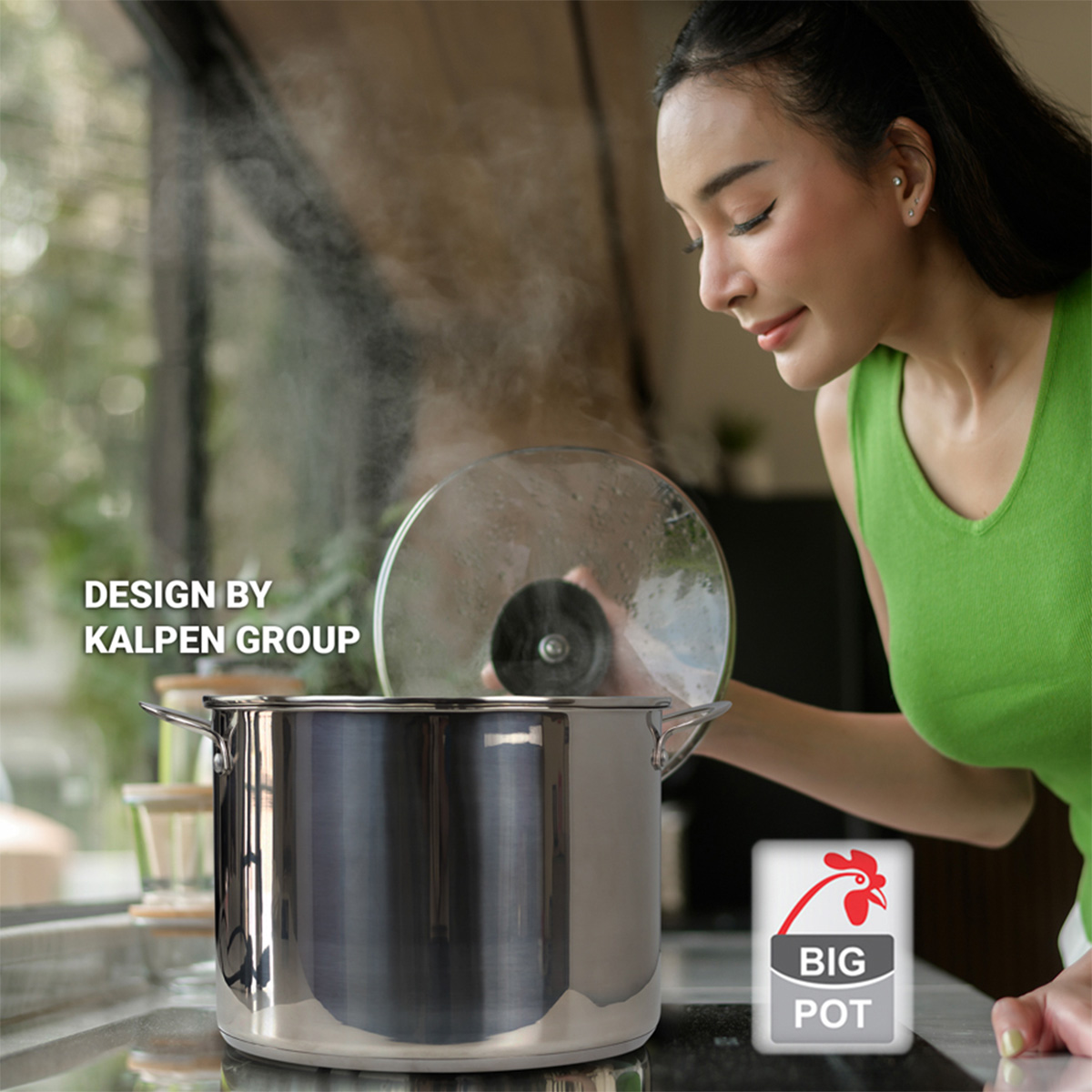 Mặc dù có dung tích lớn nhưng nồi luộc gà Kalpen Lermat 5 đáy không cồng kềnh, không thô ráp mà sản phẩm sáng bóng, thanh thoát toát lên sự sang trọng rất phù hợp với những không gian bếp hiện đại.
