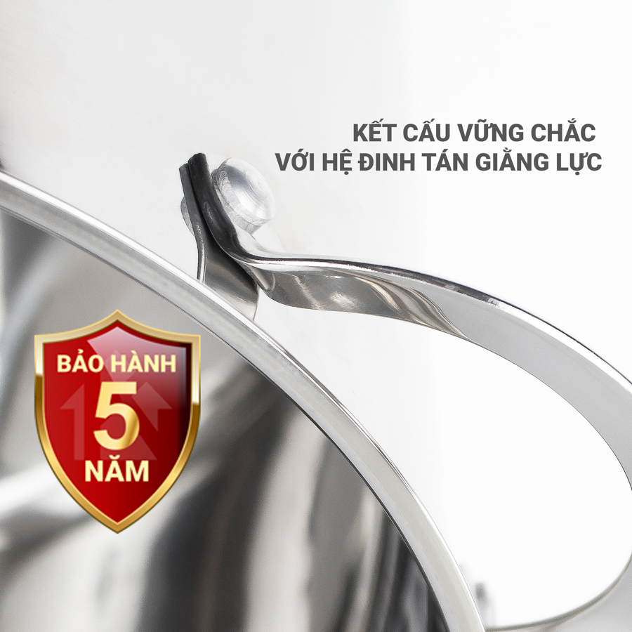 Nồi luộc gà cao cấp Kalpen Lermat 5 đáy cực kỳ bền đẹp và chắc chắn với kết cấu hệ đinh tán cường lực giữa quai nồi với thân nồi, quai với vung nồi không chỉ cho khả năng chịu lực tốt, nâng nhấc, di chuyển dễ dàng mà quai nồi, quai vung cũng được thiết kế mềm mại đảm bảo tính thẩm mỹ trong không gian nhà bếp hiện đại.