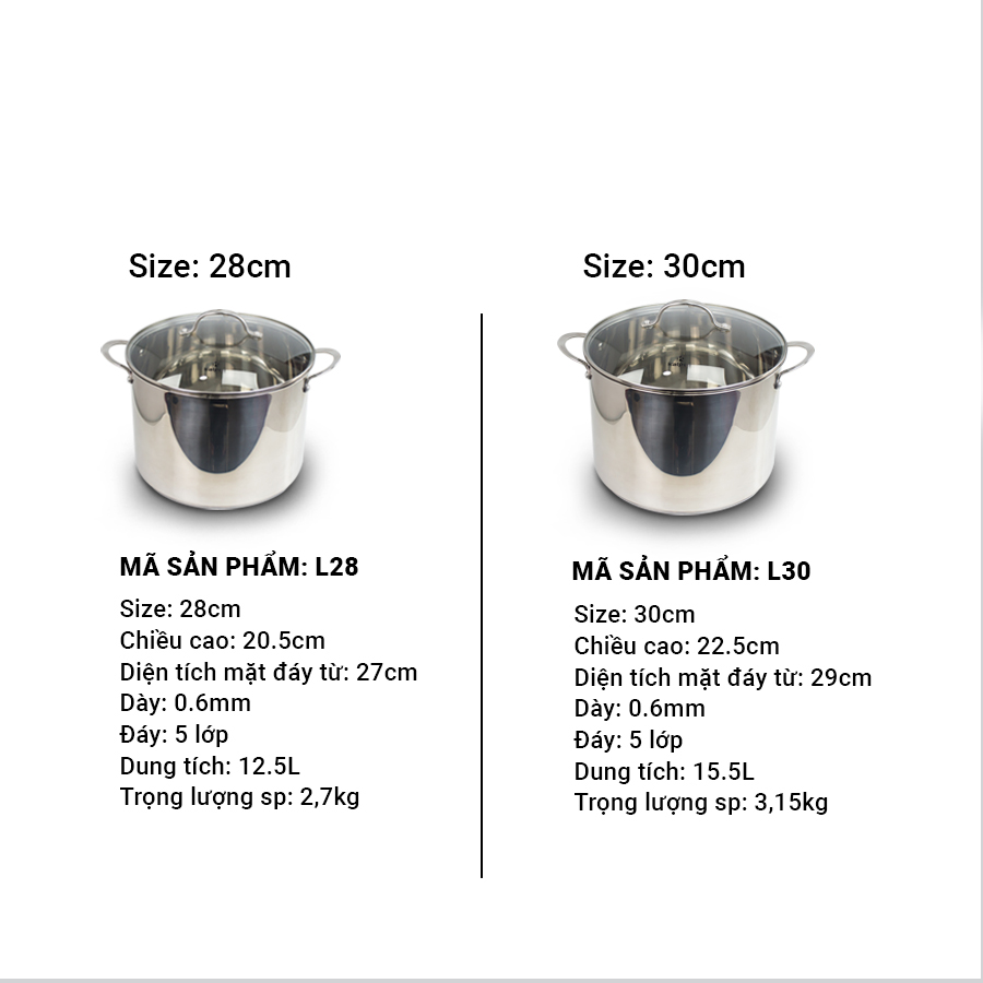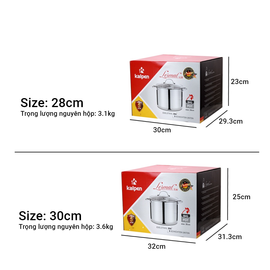 Nồi luộc gà Inox cao cấp Kalpen Lermat 5 đáy có dung tích lớn size 12,5L và size 15,5L cực kỳ thoải mái và thuận tiện để sử dụng cho nhu cầu luộc gà trong gia đình, có thể luộc 2 con gà cột cánh tiên cùng một lúc.