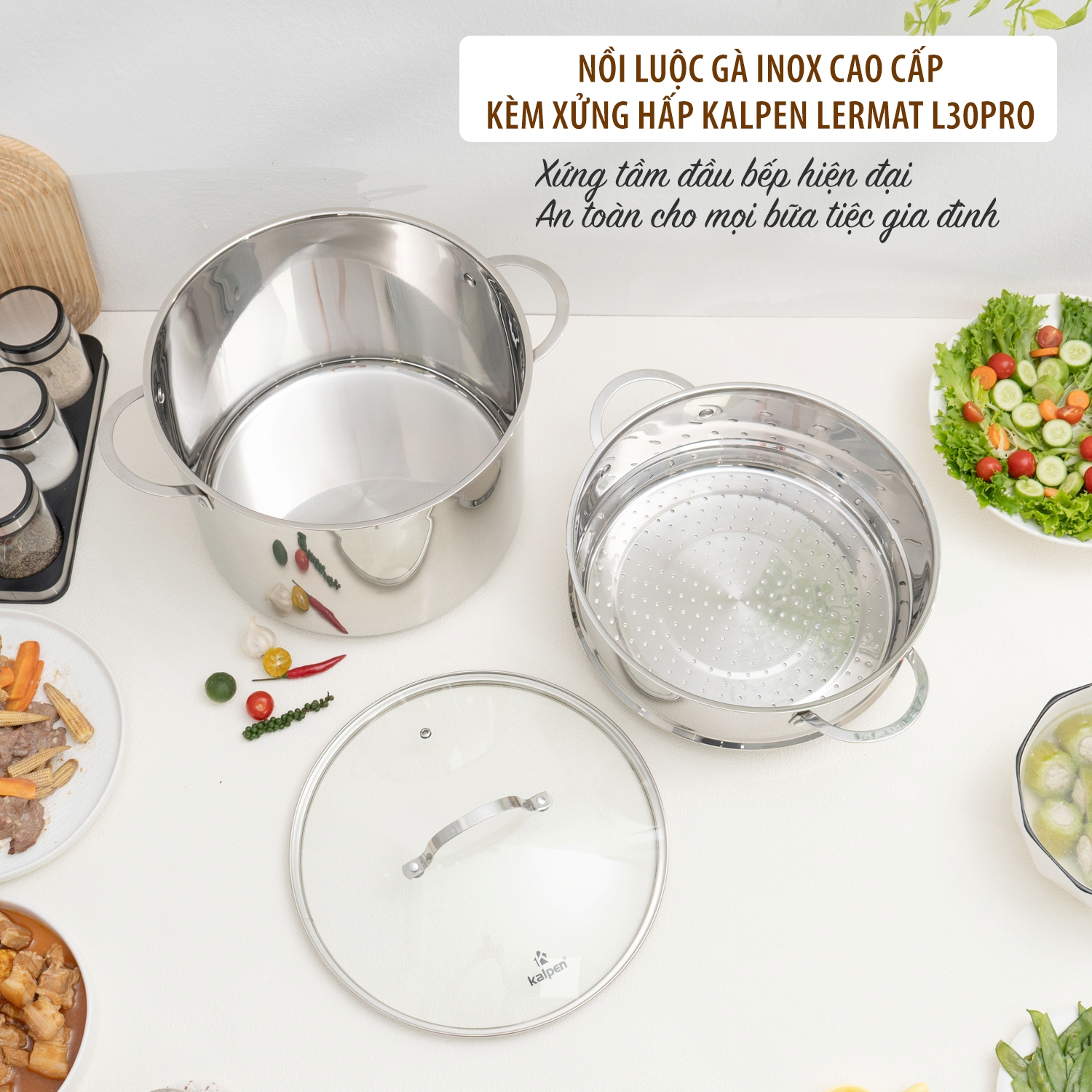 Trong căn bếp của người Việt, một chiếc nồi luộc gà inox chất lượng cao không chỉ phục vụ những bữa cơm thường ngày mà còn giữ vai trò quan trọng trong các dịp lễ Tết, giỗ chạp, hay tiệc sum họp gia đình. Và nồi luộc gà Kalpen Lermat L30Pro chính là lựa chọn lý tưởng, hội tụ đầy đủ yếu tố: chất liệu an toàn, thiết kế tinh tế, công năng vượt trội – xứng đáng có mặt trong mọi gian bếp Việt.