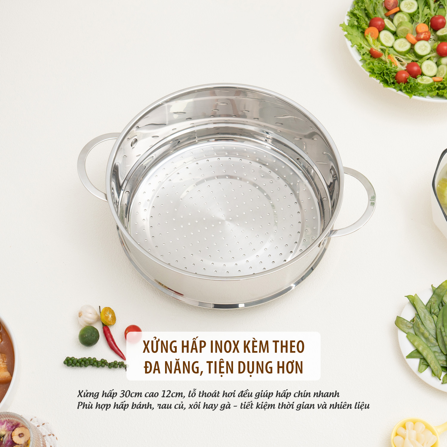 Xửng hấp inox tiện lợi: Chế biến được nhiều món