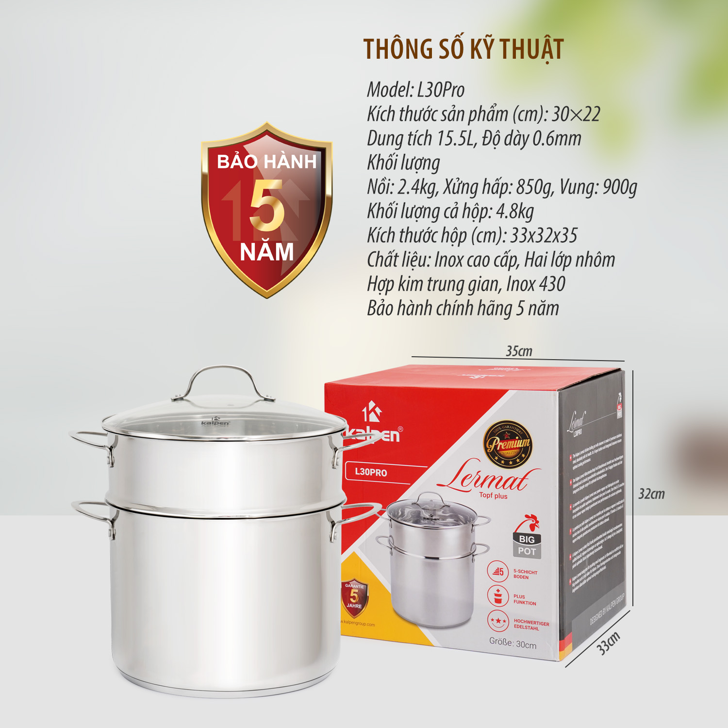 Nồi inox cao cấp Kalpen Lermat L30Pro |