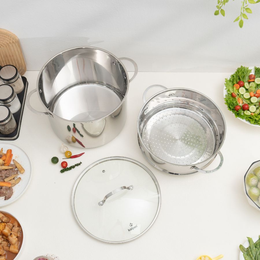 Đi kèm với nồi luộc gà inox cao cấp Kalpen Lermat L30Pro là xửng hấp inox tiện lợi, biến Kalpen Lermat L30Pro thành một thiết bị 2 trong 1 giúp bạn dễ dàng chế biến rất nhiều món như hấp xôi, bánh bao, bánh giò, hấp rau củ, hấp cá, thịt, hấp gà, vịt nguyên con mà vẫn tối ưu được không gian và chi phí mua sắm.